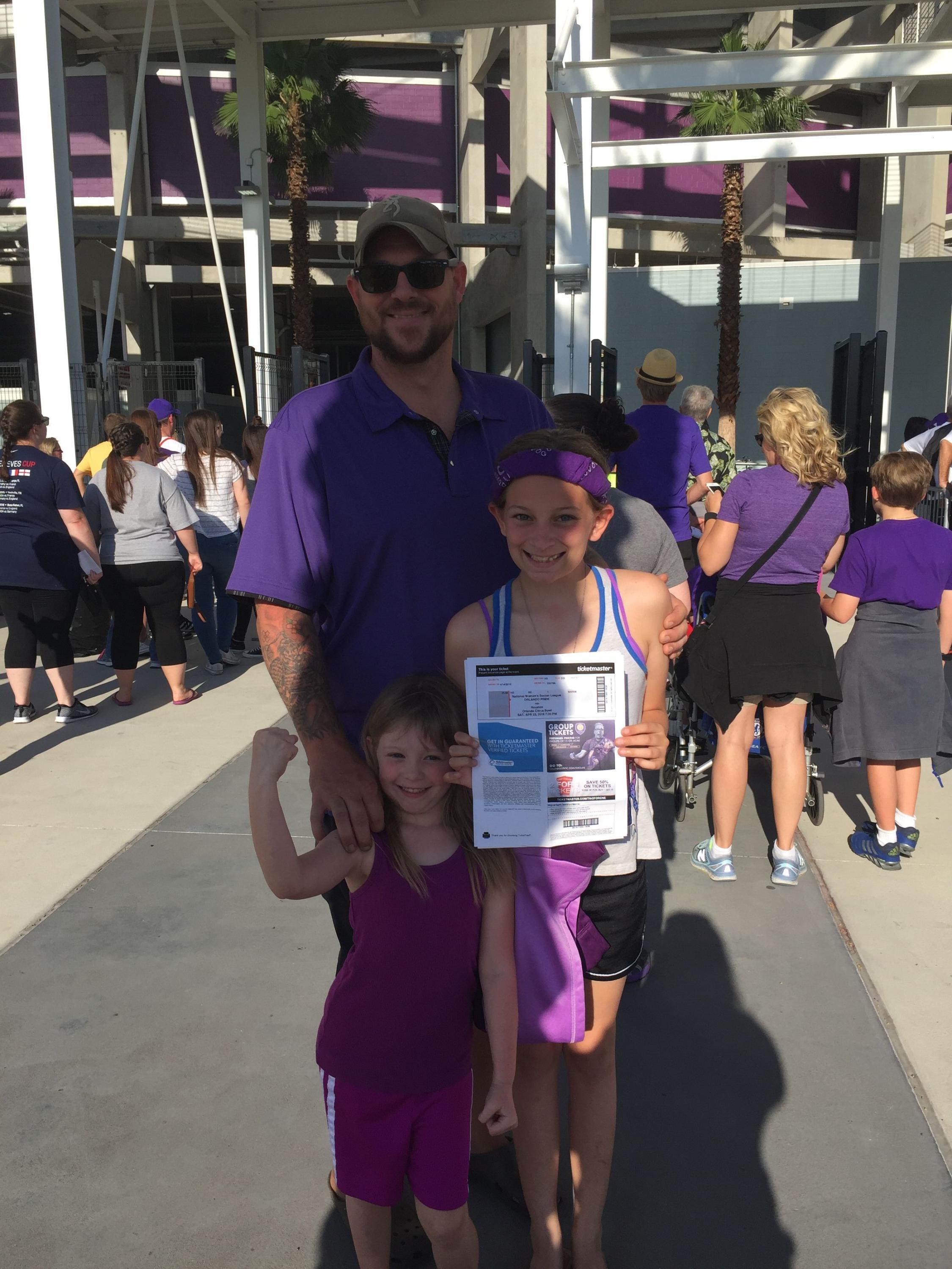 Thank you so much for the 3 tickets to the Orlando Pride soccer match. It was our families first time going to a soccer match. My husband and I are both proud Army Veterans. Attending this game was very special for our son who has special needs.