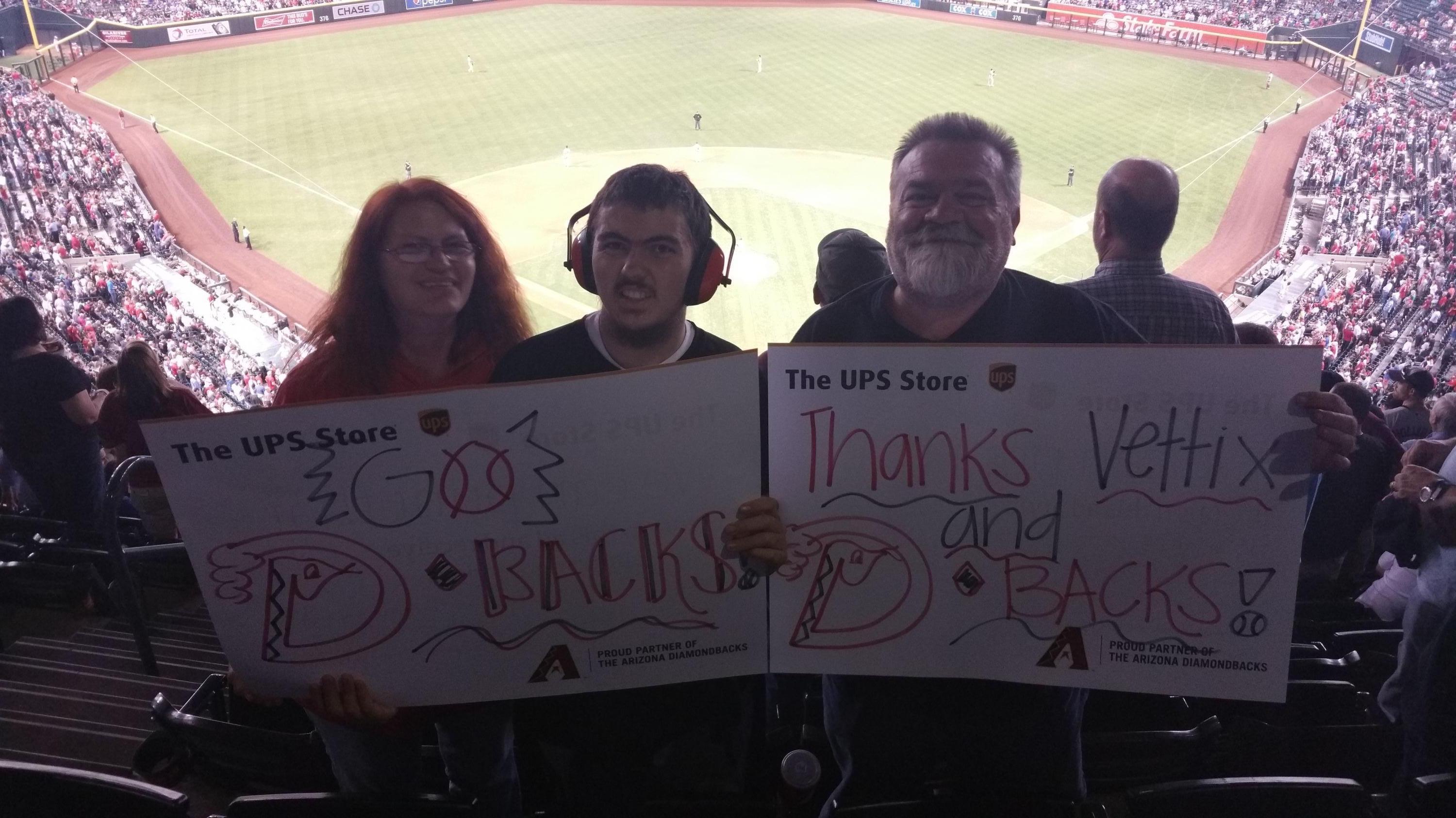I want to thank the Arizona Diamondbacks and VetTix for the tickets! My nephew is autistic and loves baseball and LOVES the D-backs! Without this amazingly generous gift, we would not have been able to afford to attend the game! Thanks again!