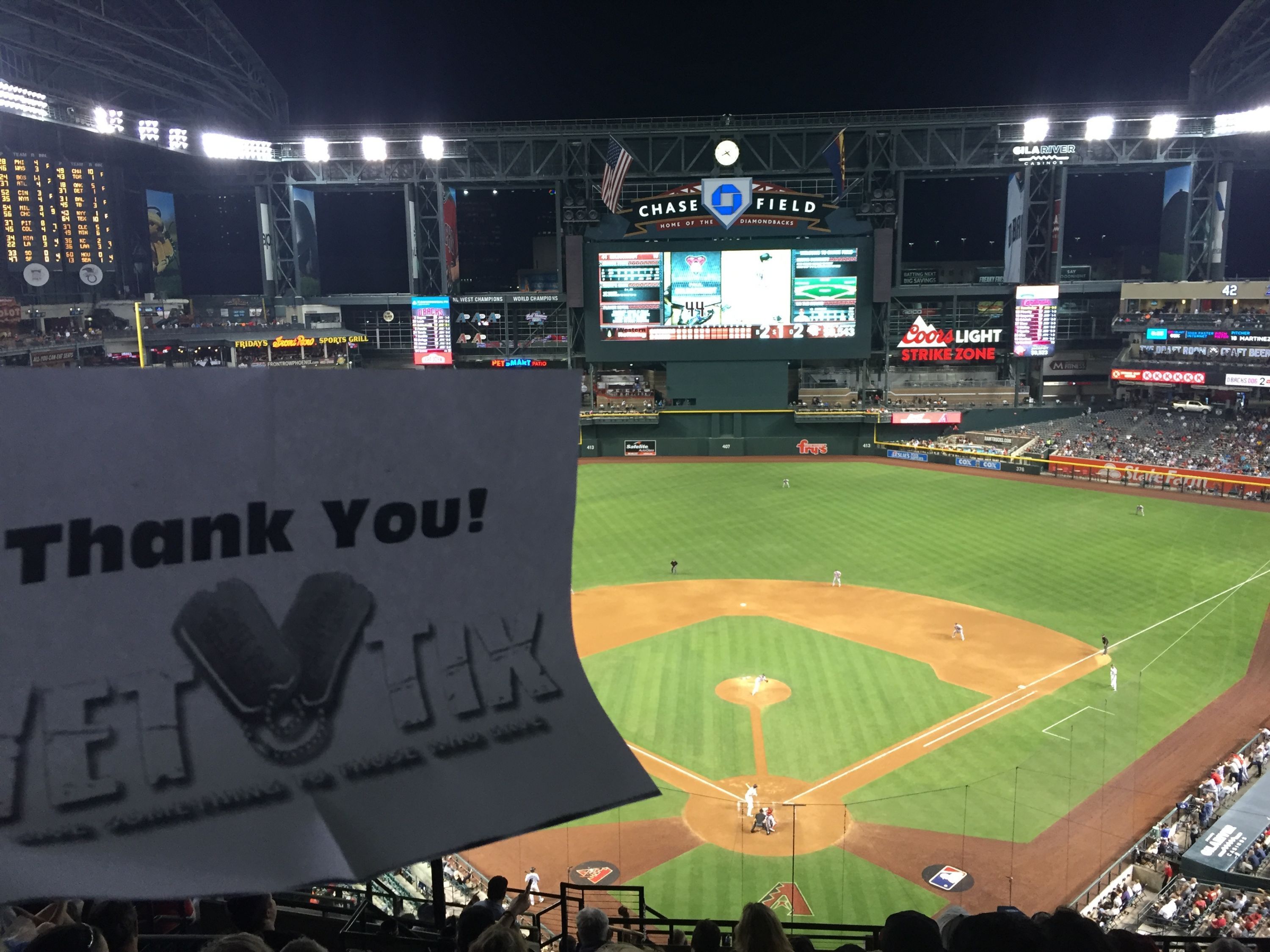 Thank you Arizona Diamondbacks for donating extra seats to veterans. It was my first time at the stadium and we enjoyed the whole evening. Thanks!