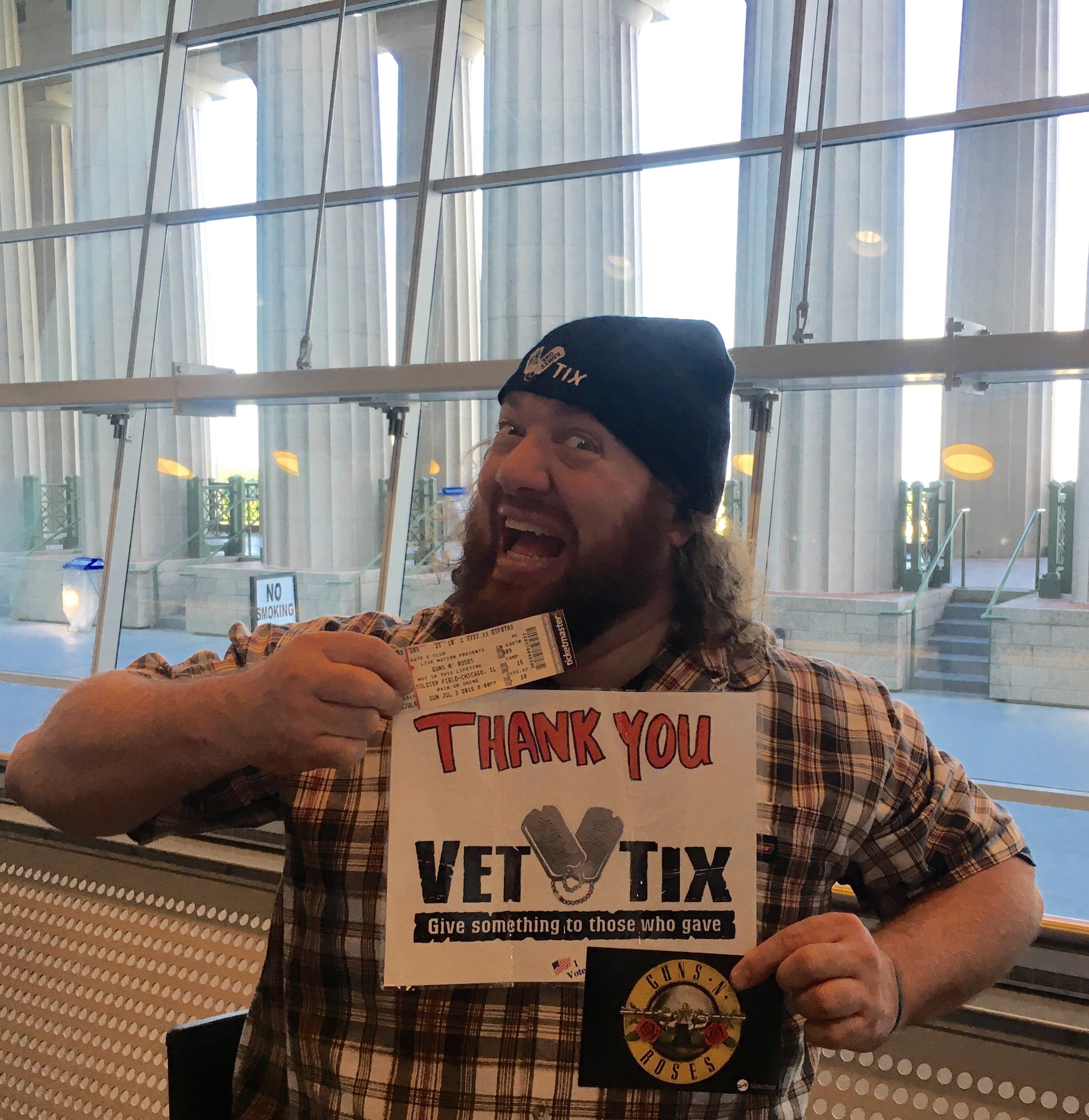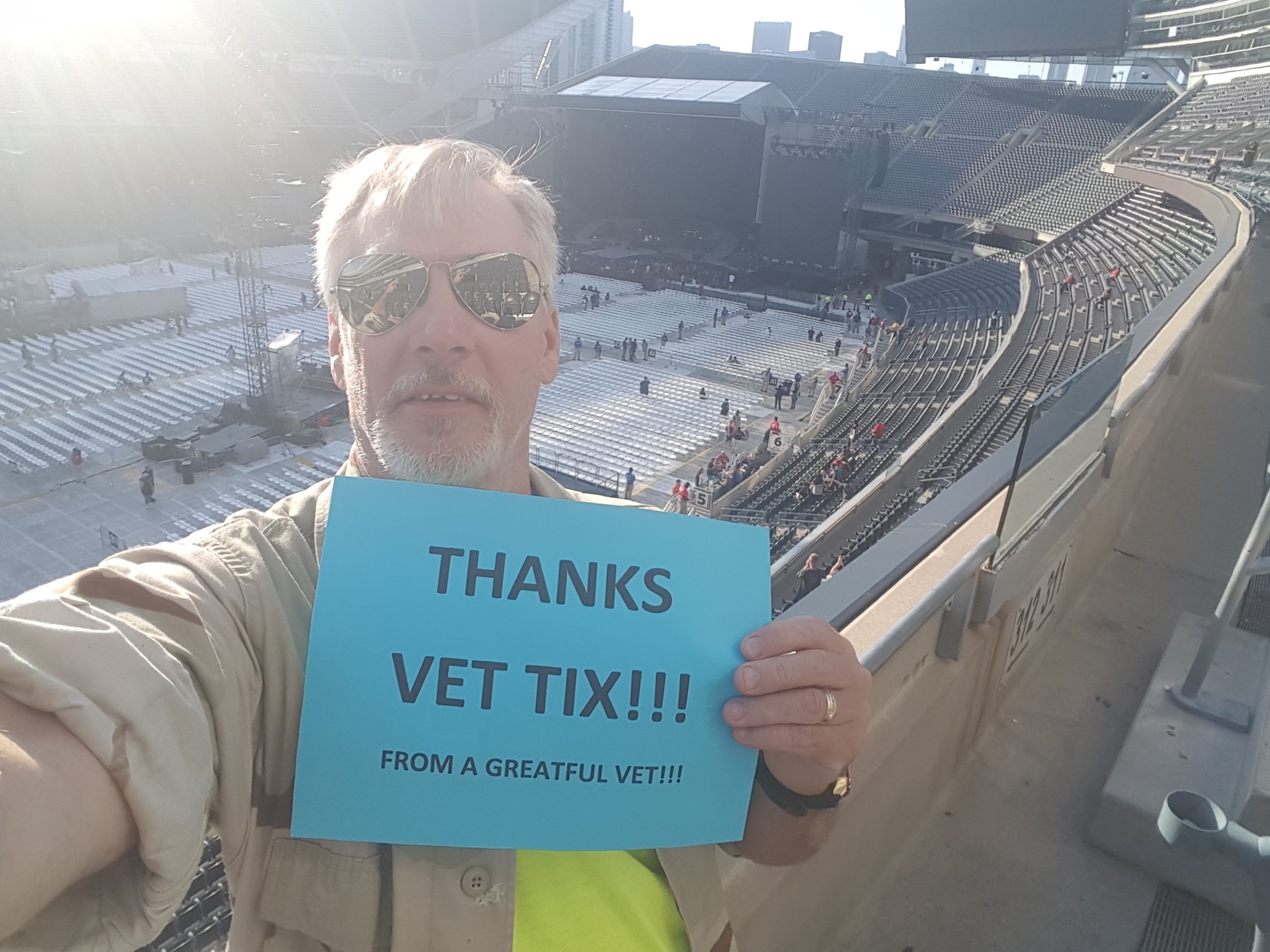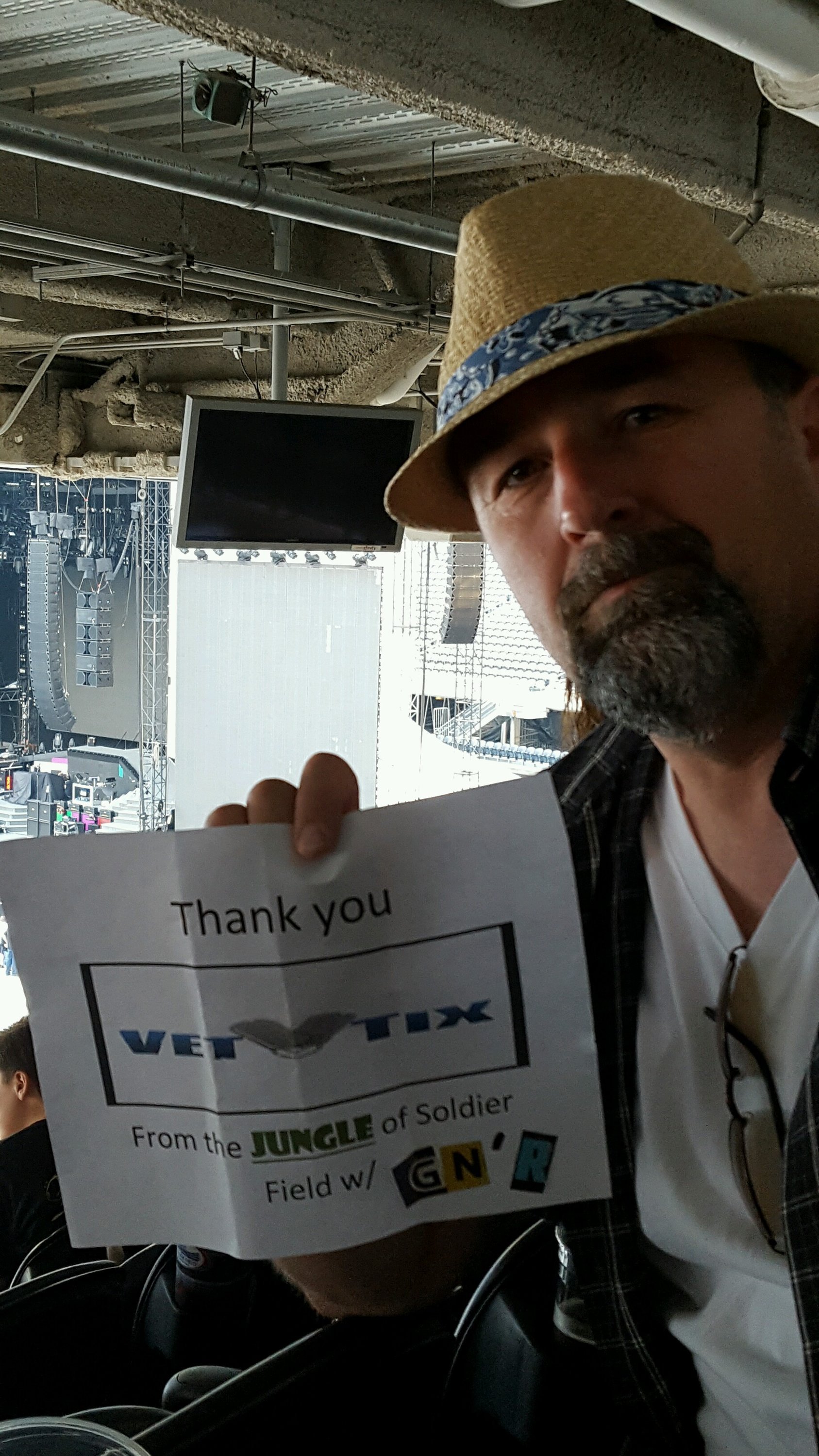 Thanks a million Vet Tix for the tix to the GN'R show in Chicago. I can't believe how well organized the process was. Not a single FUBAR moment from the time I submitted my lottery request to the interaction at WILL CALL at Soldier Field to pick up my tickets. Awesome Job!!!!! P.S. the seats were amazing, and the show was AWESOME!!!!! Keep up t he GREAT work!!! -Marc