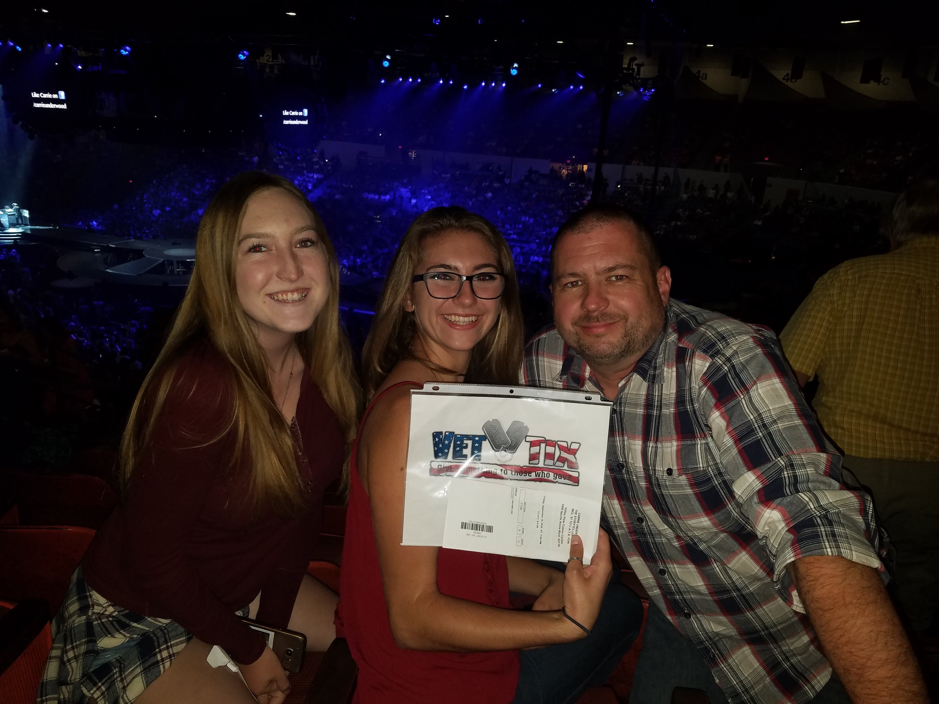 AEG Live, Thank you for tickets to Carrie Underwood. We had a wonderful time. It was a great show and we had really good seats. Thank you supporting the military and it veterans.