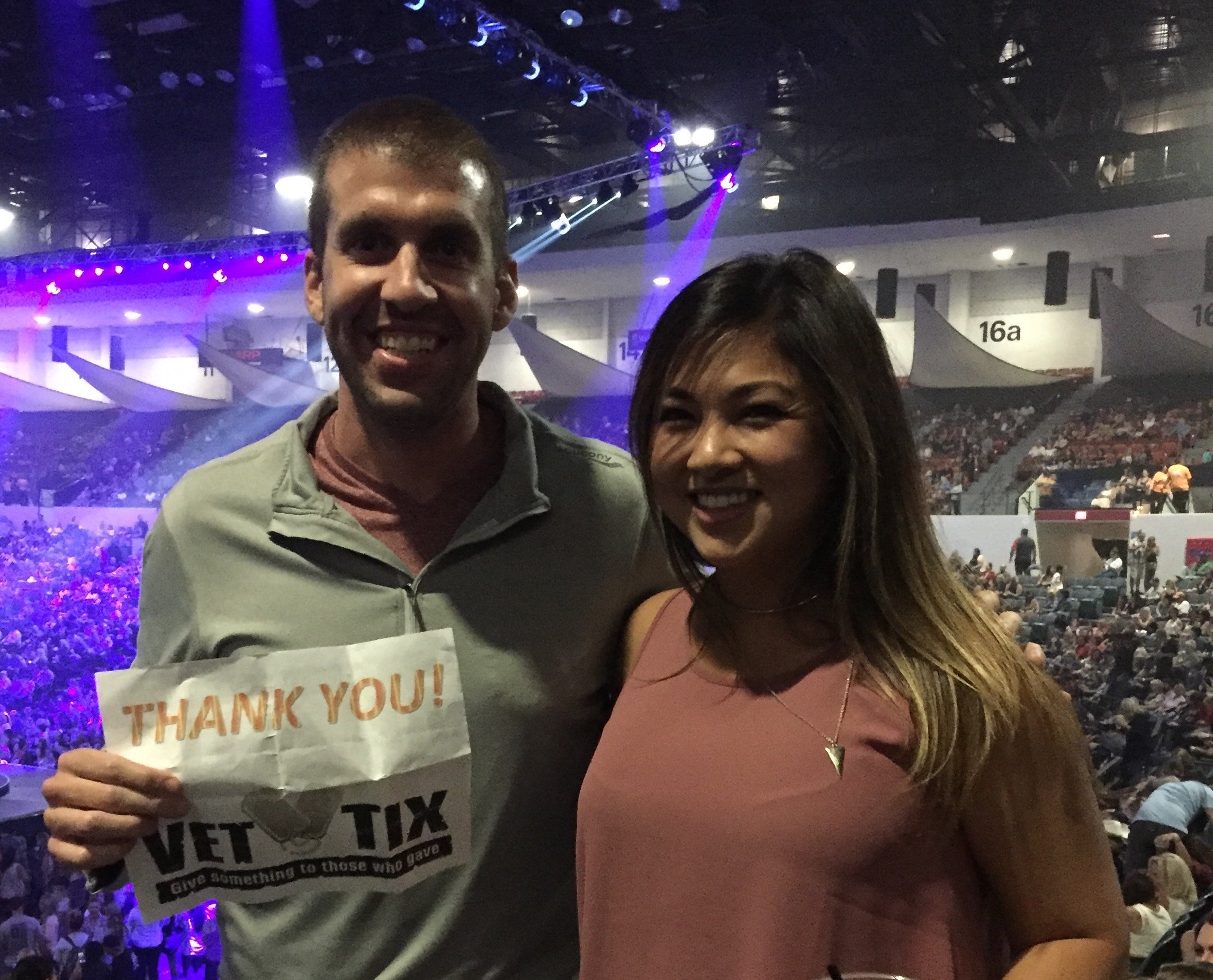 Because of VetTix and AEG Live my family and I were able to go see one of our favorite country singers. On behalf of my family I would like to say thank you for making this possible.