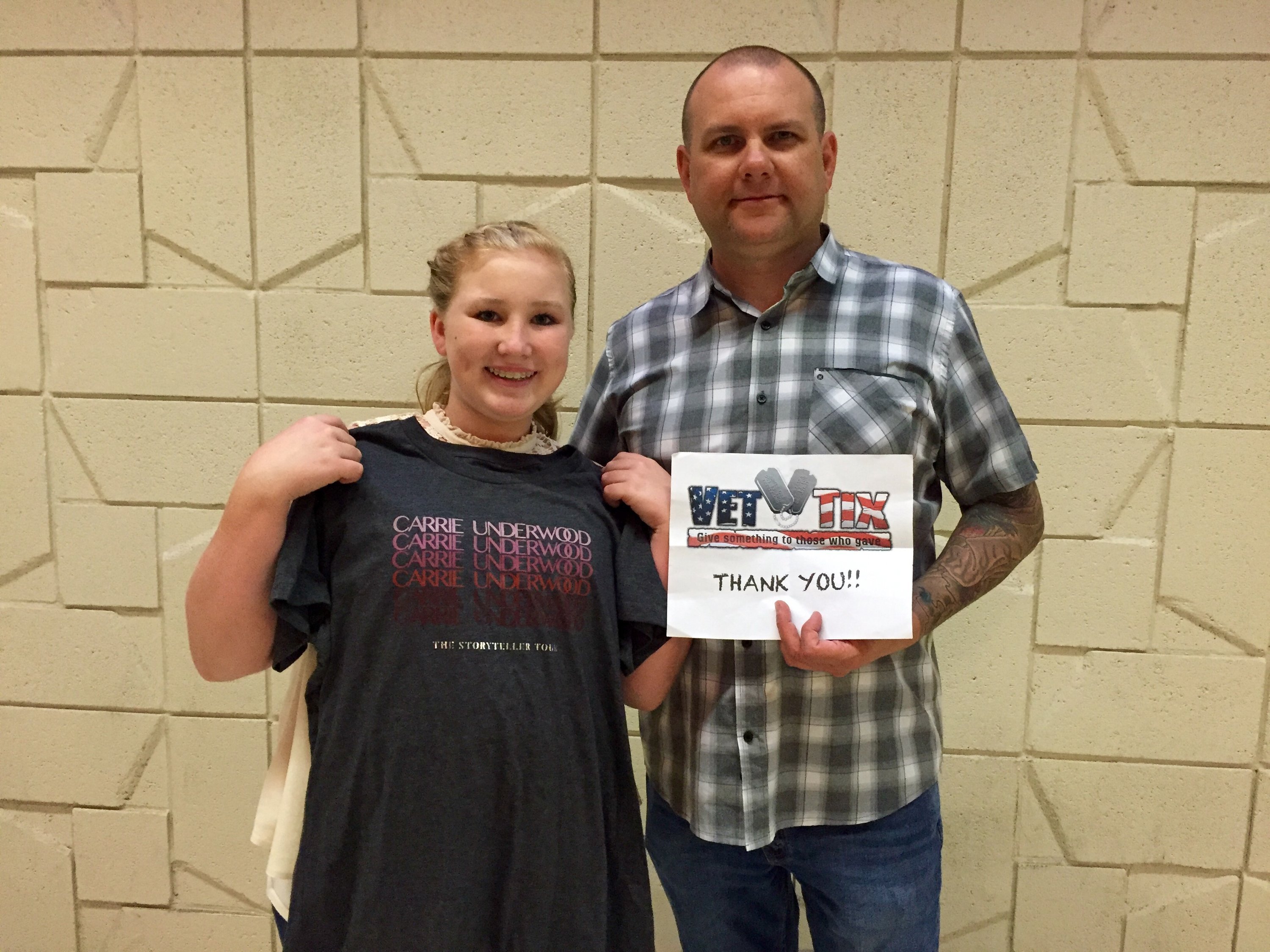Thank you from the bottom of my heart for the tickets. It was nice to be able to give my wife a night away from the kids. She does so much for our family and I'm glad I was able to do something for her thanks to your generous donation. She had so much fun at the Carrie Underwood concert