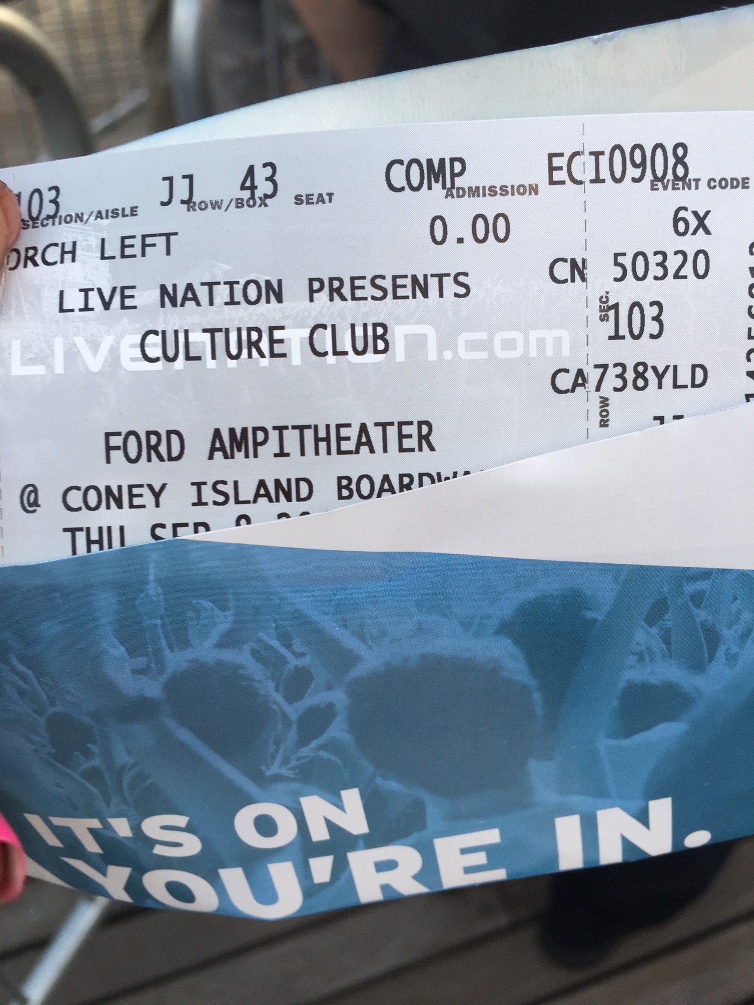 Thank you so very much Live Nation for the awesome tickets to the Culture Club Concert. The seats were up front behind the VIP Section. My family appreciates your loyalty to the Vets of this great country!