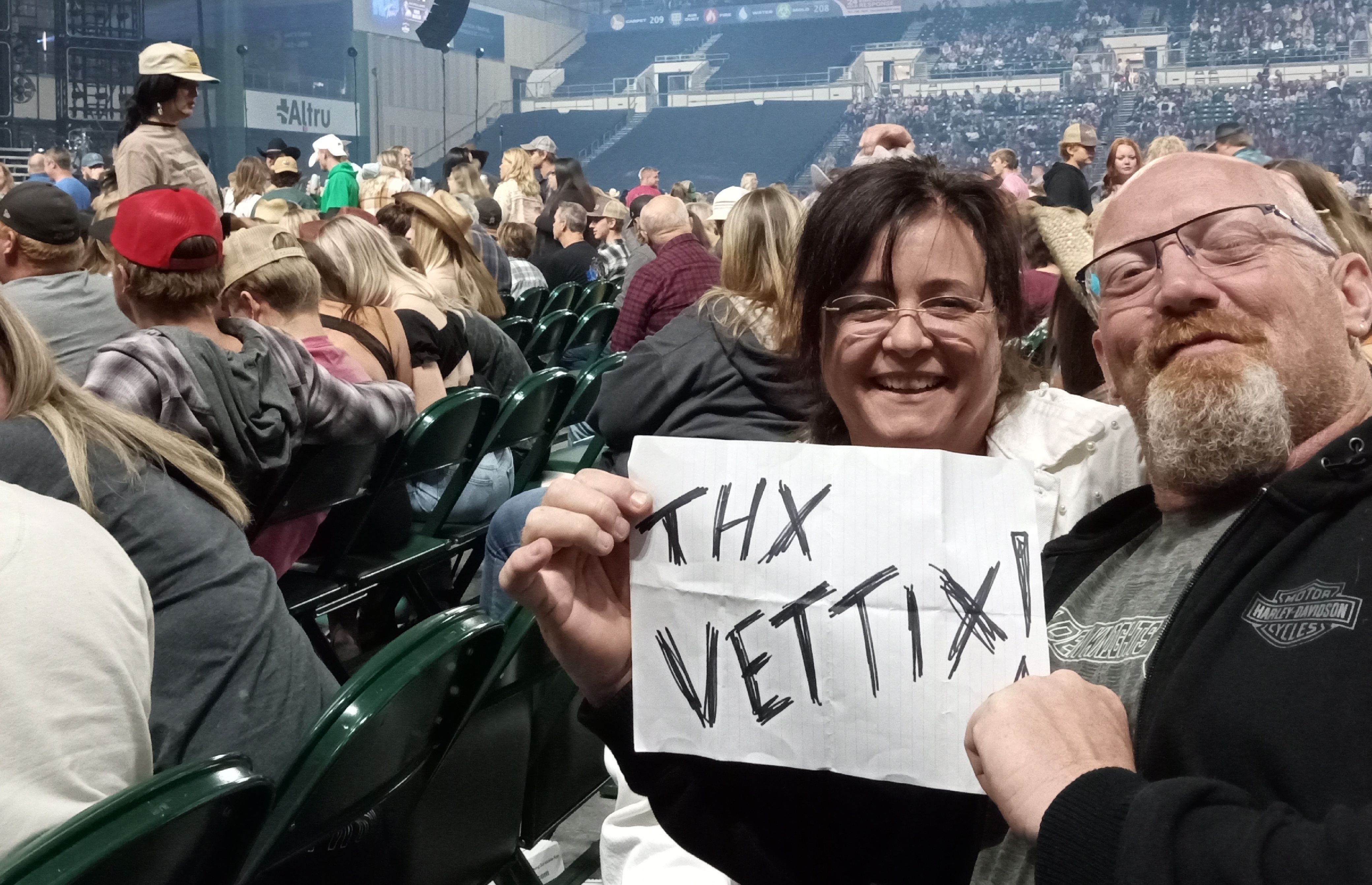 A big thanks to Oak View Group LLC for the tickets to Thomas Rhett. It was a surprise for my wife, being married for 22 years and her keeping the house running. She has gone through 2 back surgeries and still has the best attitude. This made her night thank you so much.