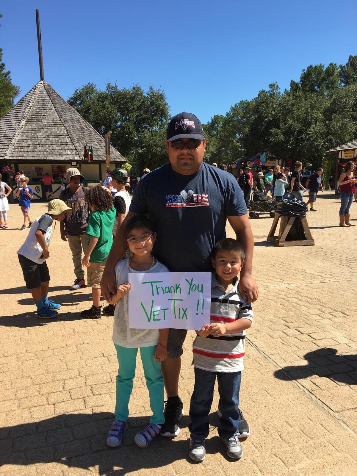 Tickets for a family outing to the Texas Renaissance Festival. It was our first time. From the food, to the shows and animals, my family had a great time. I wanted to simply thank you for reaching out to Vet Tix and donating these tickets so that Veterans like myself are able to get away from the every day "hussle bussle" that we call life and enjoy some quality time with our families and or friends. Your kindness and willing to give back to Veterans doesn't go unnoticed and we truly are grateful. Organizations' like yours show your gratitude to our Veterans by doing something as simple as y'all donating tickets. I look forward to supporting the Texas Renaissance Festival in the future, tickets donated to Vet Tix or not. Once again, thank you!