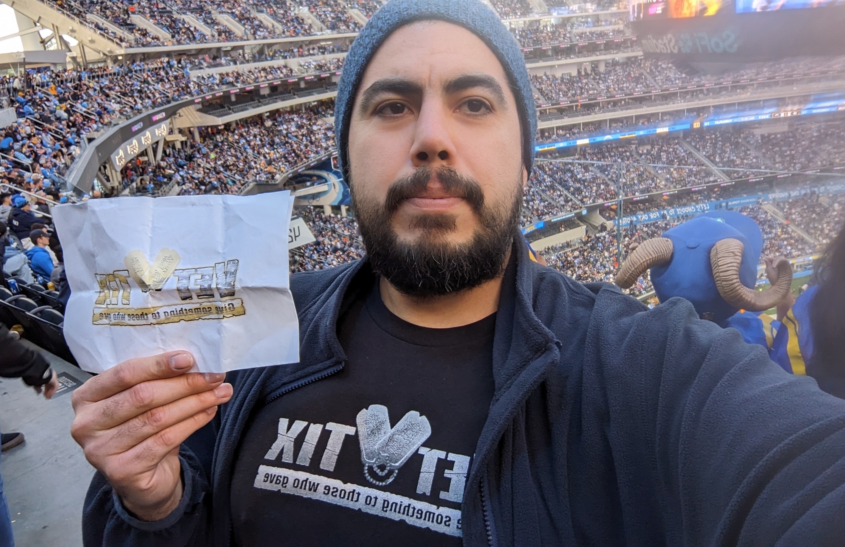 I would like to thank Veteran Tickets Foundation for the donation of tickets for the Los Angeles Chargers - Los Angeles Rams game. The venue is awesome and the game was very fun! Thank you very much for making this event possible!