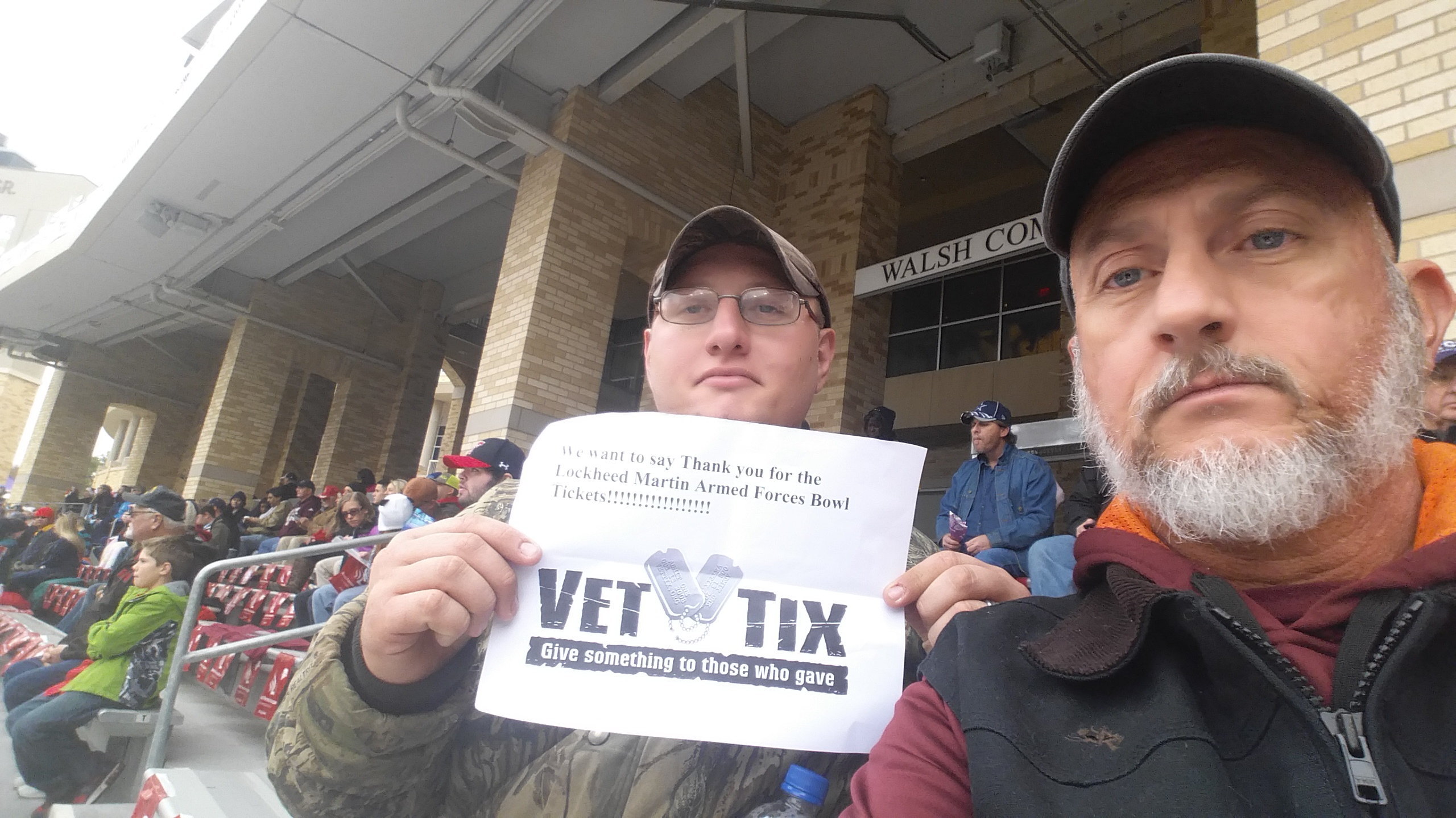 I would like to start by saying thank you to Lockheed Martin Armed Forces Bowl the Heart of Dallas Bowl the United States Naval Academy Athletics and Vet Tix for giving my family and I a great opportunity to experience our very first college bowl game. WE HAD A BLAST