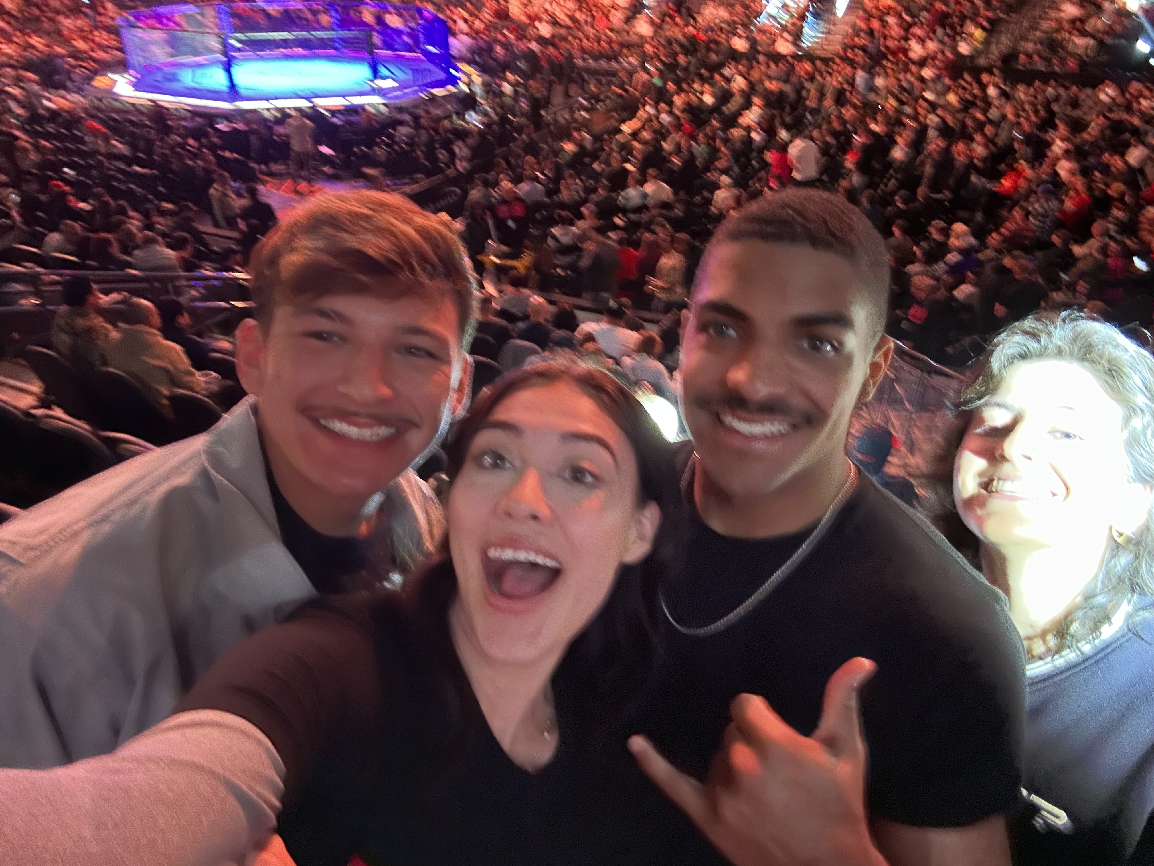Wow!! Such a crazy experience being at UFC!! Thanks to UFC for the Tix! We loved the experience and the Fights! Loved seeing Joe Rogan and Dana White!!