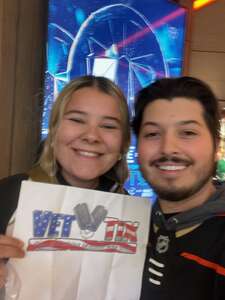 Thank you Veteran Tickets Foundation Purchases for a wonderful evening watching the Ducks vs Oilers. Bummed they didn't get to take home the win but loved watching live.