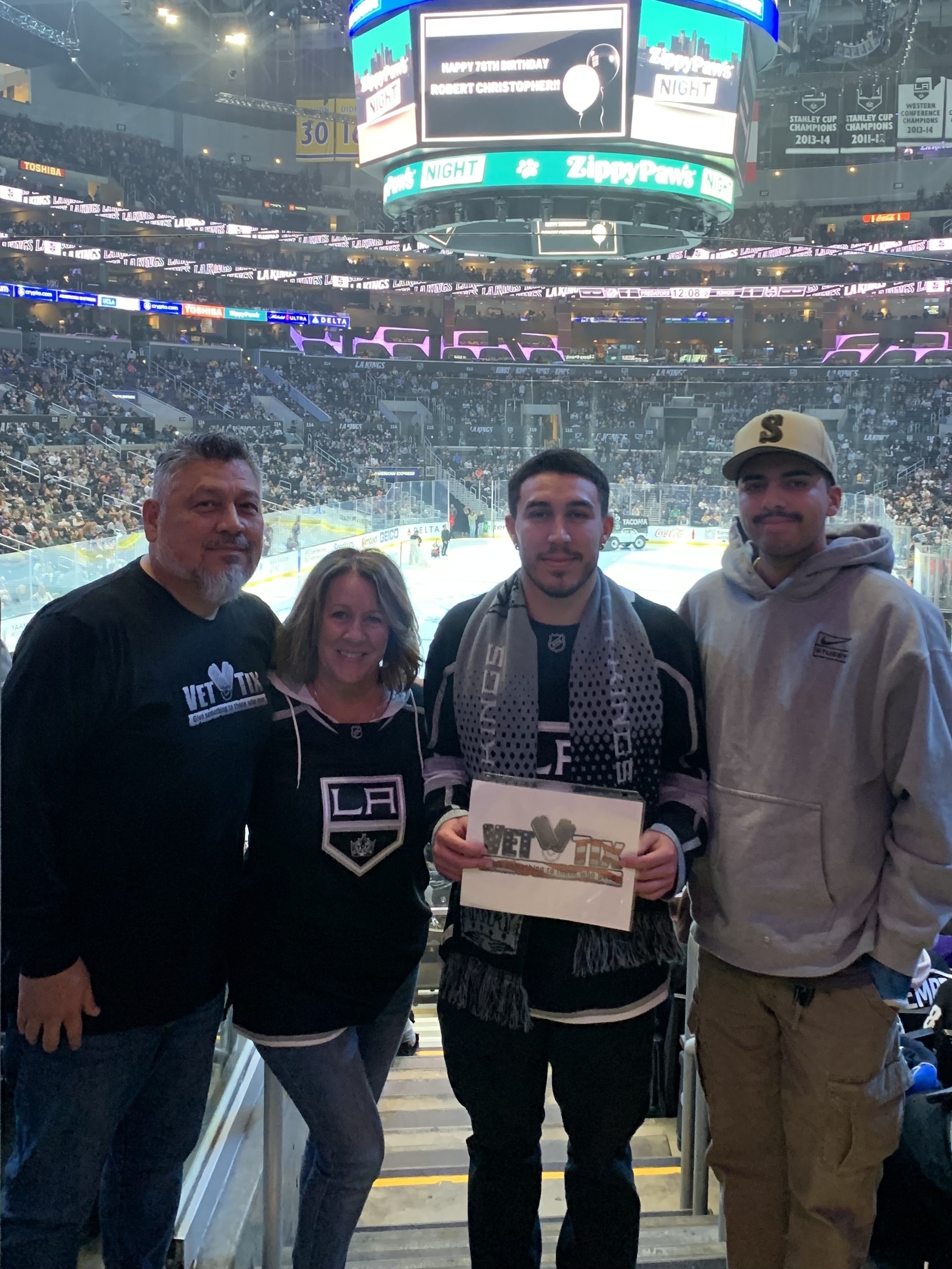 Thank you Veteran Tickets Foundation Purchases we enjoyed the Los Angeles Kings hockey game.