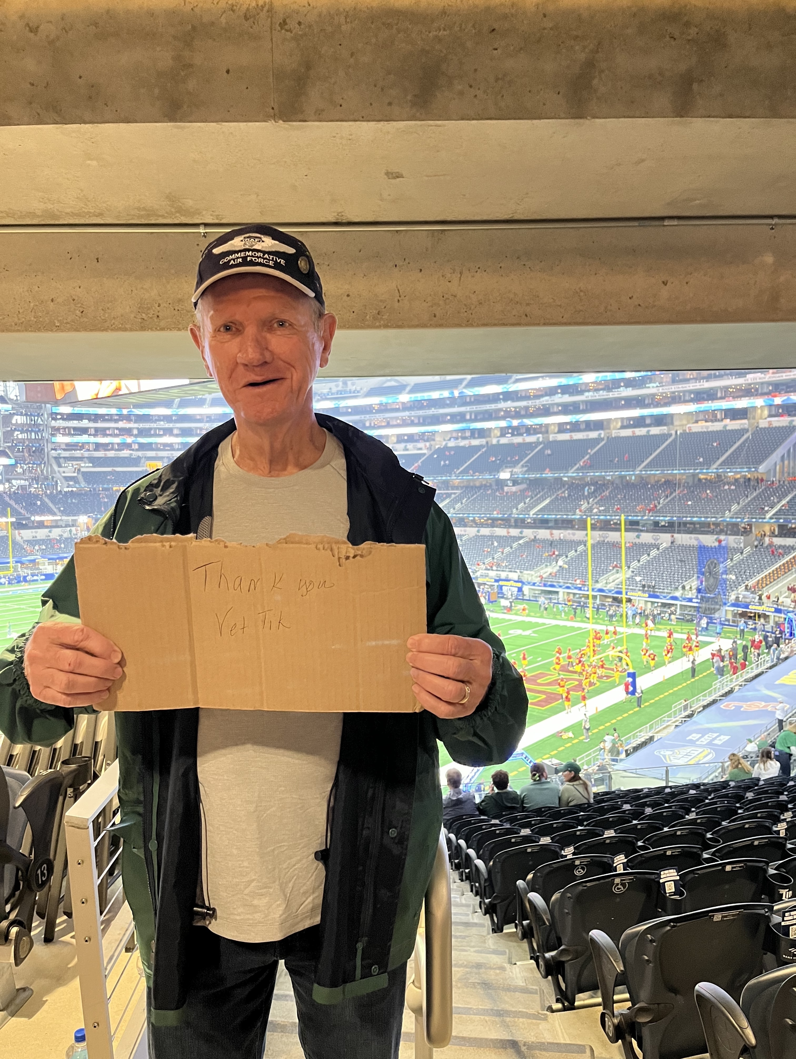 This was a game for the ages, and we got to go to it thanks to those involved with Vet Tix and all that they do for us veterans. While the outcome wasn't what we were hoping for, we were glad the game came down to the last play. First time rooting for USC, since they were representing the PAC12, and this was an out of conference game. Forgot our Vet Tix banner. My son left it in the car.🤦ðŸ¼