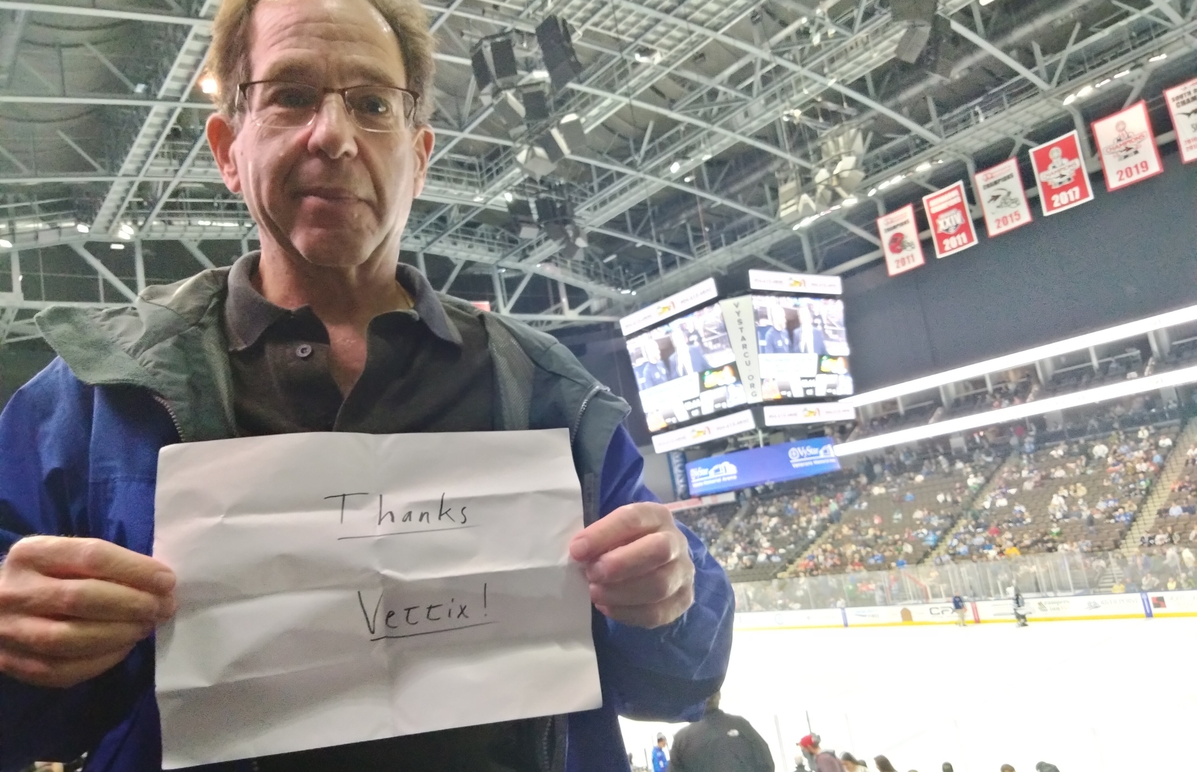 Thank you Icemen for the great seats you donated. We had a great time. Was looking forward to overtime with our success but it was a tough loss. Looking forward to next time! Shane & Jenny Thank you Vettix for the opportunity to obtain tickets through the program.