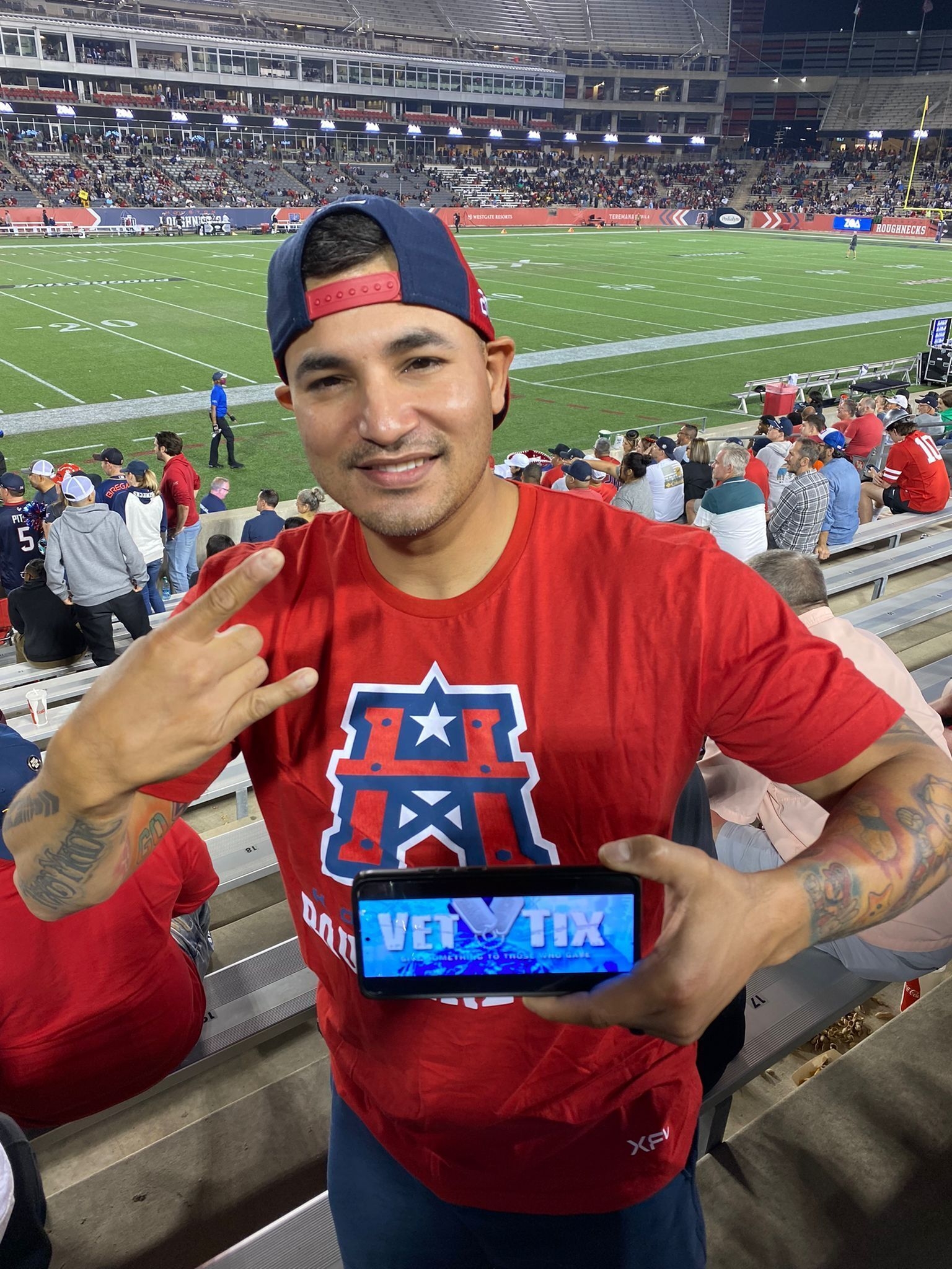 2 Vets (USAF/Marines) yelling for dem Roughnecks!! Thank you toVetTix and the XFL for the great seat!! Me and bro in law loved it!!!
