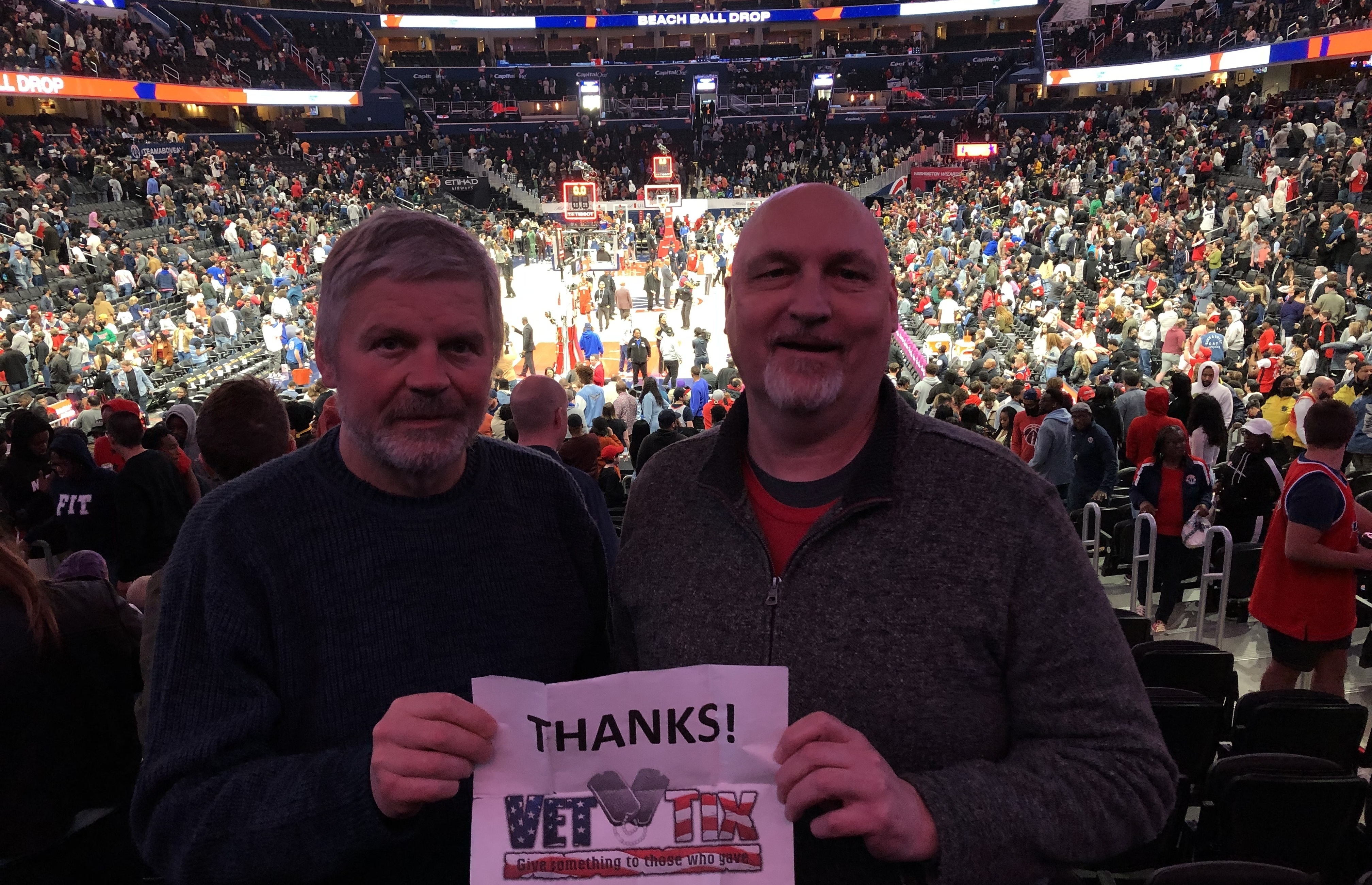 Thank you Vettix for our tickets! Our Easter Sunday was awesome. Being in DC for the first time with the guys and seeing the Capital One arena was epic. Thank so much for your support. Hope you guys continue to make our service men/women happy with these type of events! We all appreciate what you do!