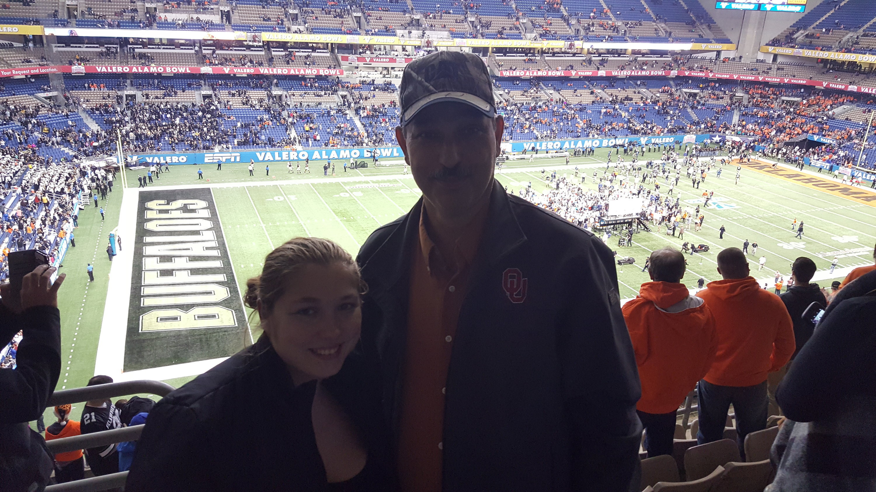 This was a very nice experience and we had lots of fun cheering with the other fans from Colorado and Oklahoma. We really enjoyed seeing all the new graduated Airmen from the Air Force out on the field holding and waving the flag for the national anthem. We are looking forward to getting some tickets for next year's Alamo bowl. Thank you so much for the opportunity to be apart of this experience.