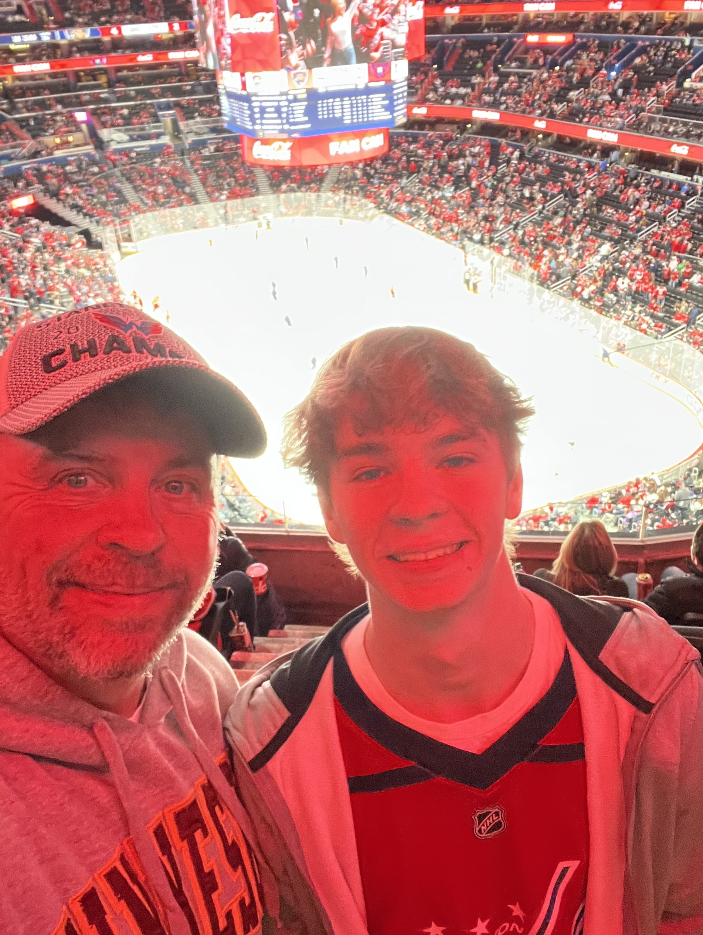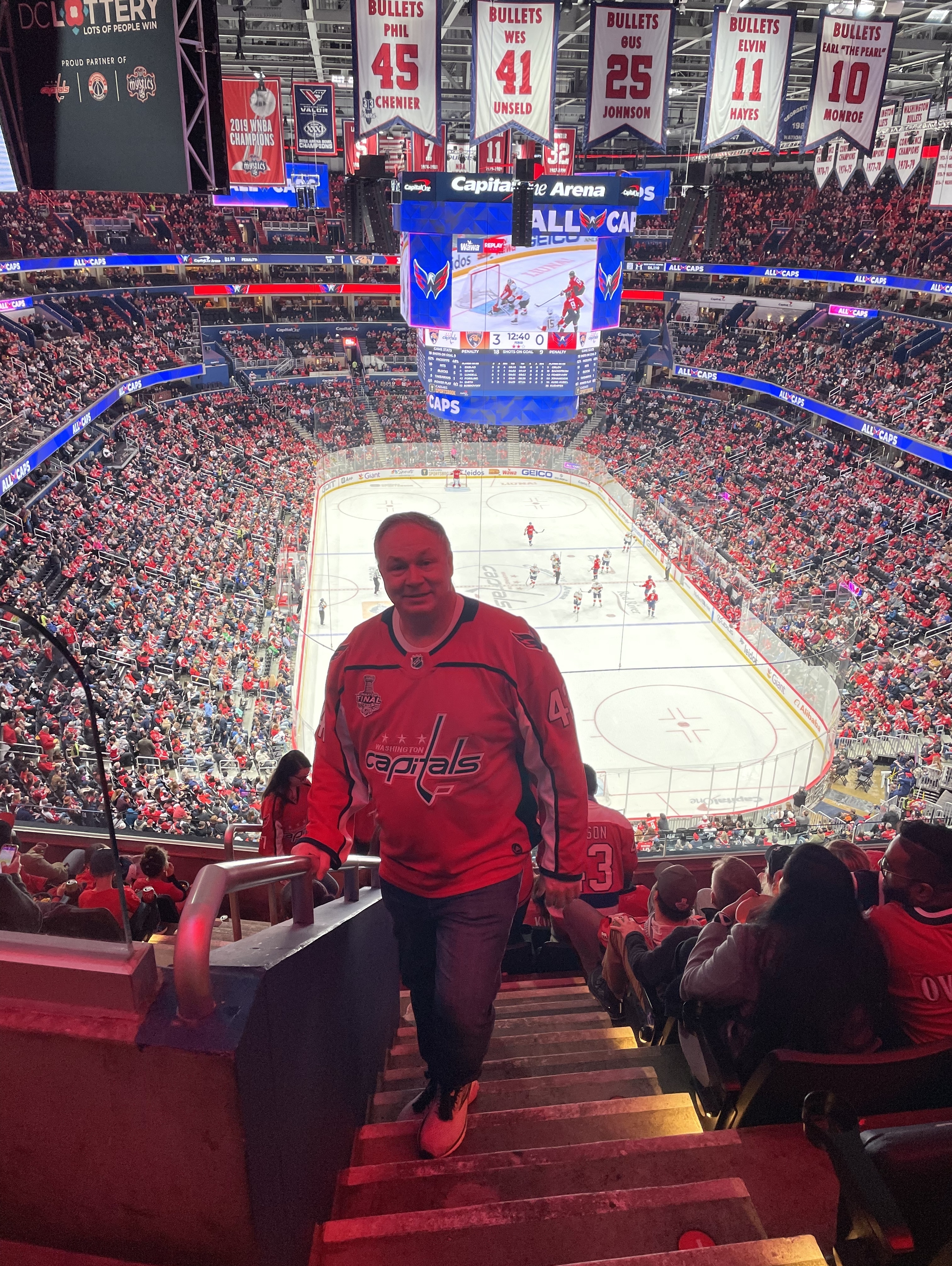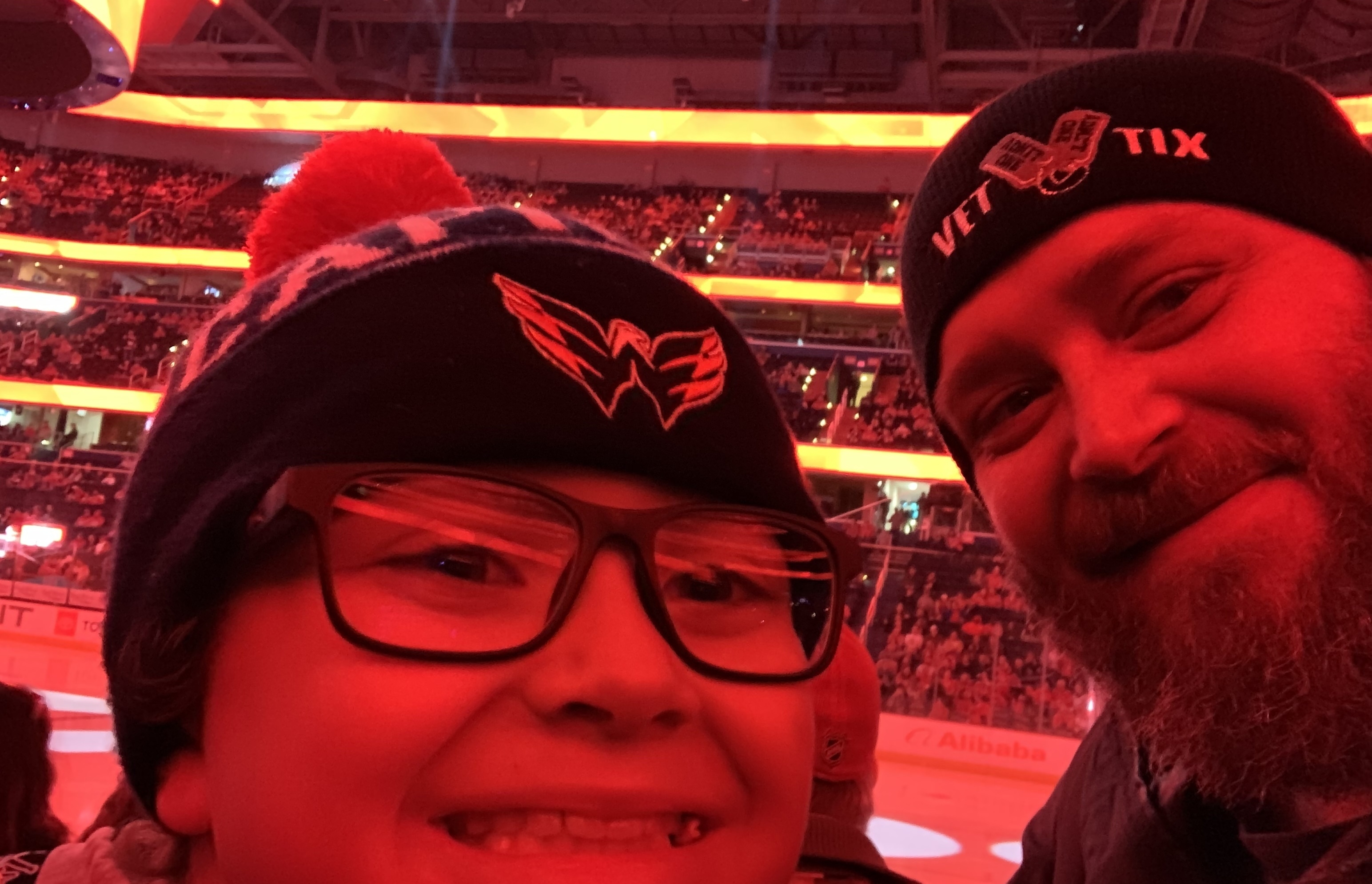 I love watching the Caps play, even when they get blown out. Thank you! I even captured the VetTix logo on the big screen in the background.