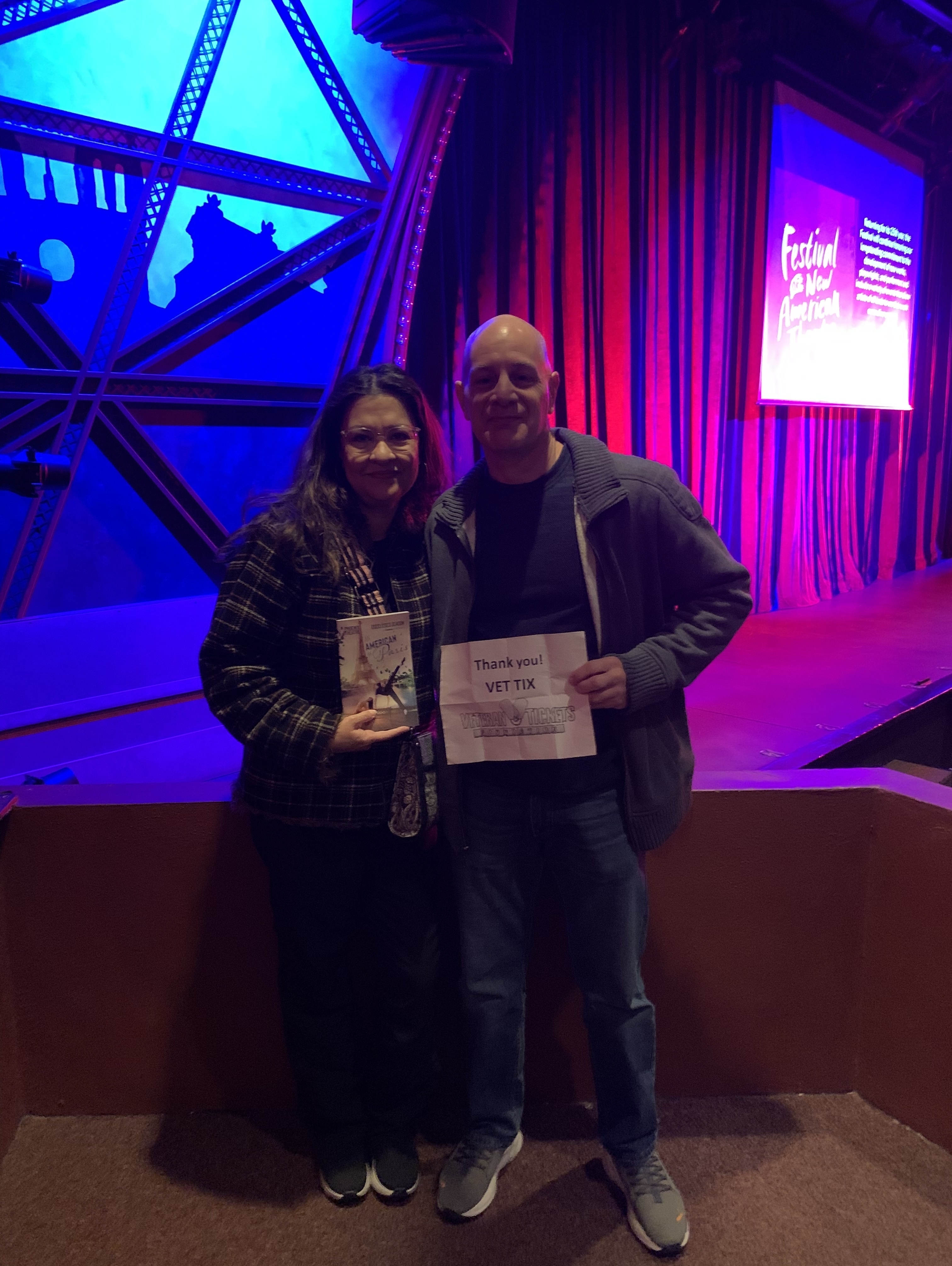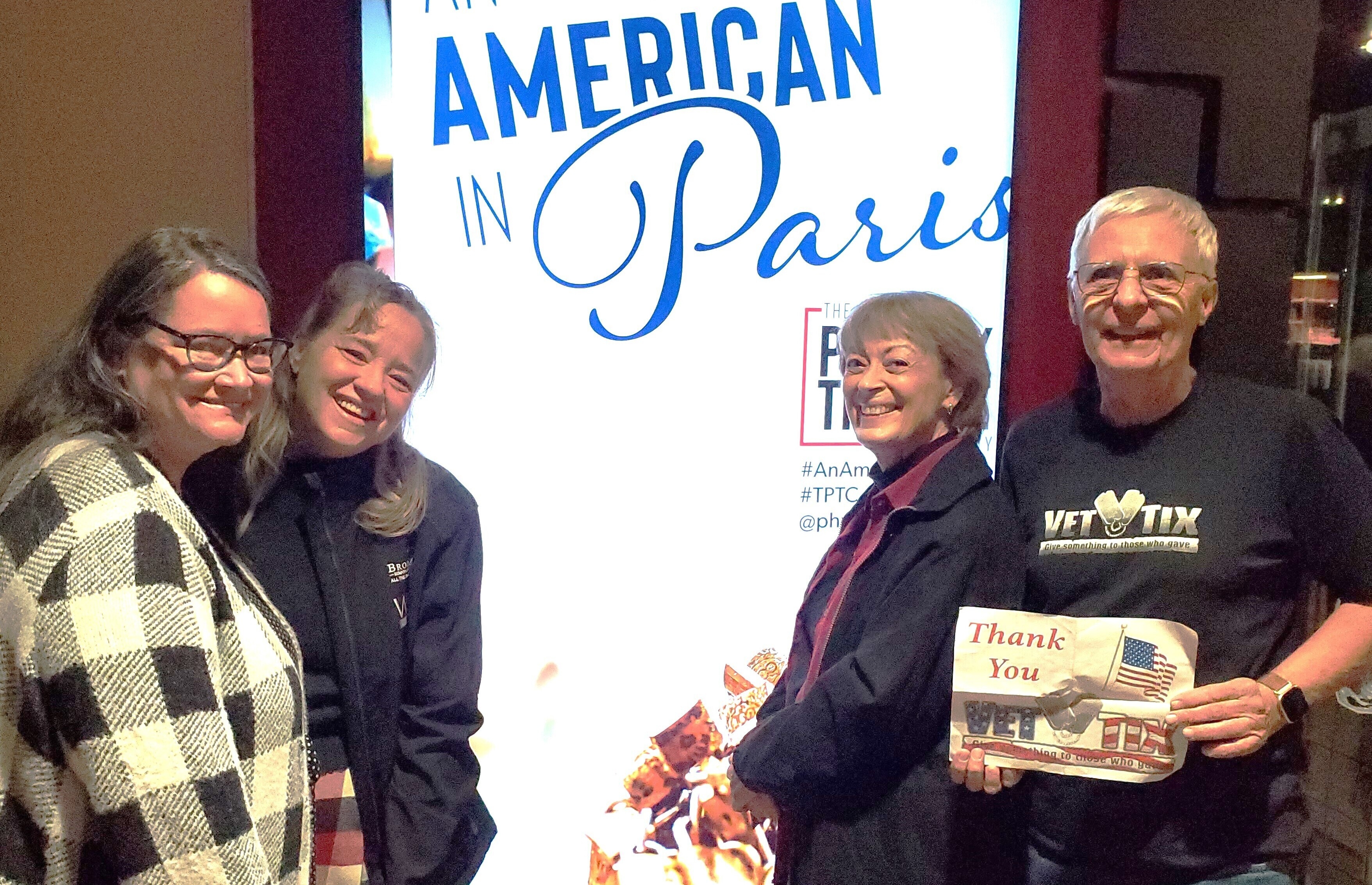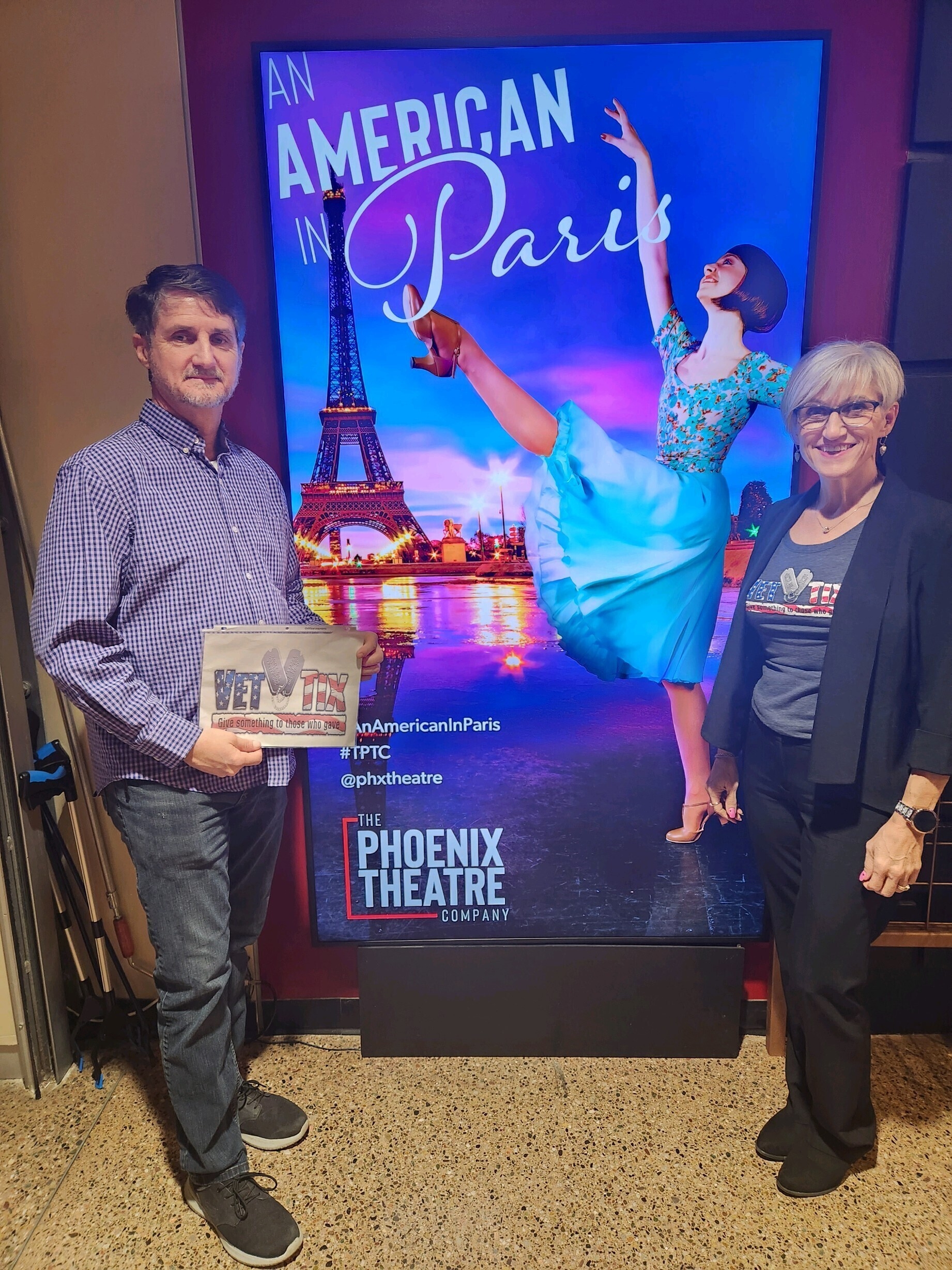 Thank You, The Phoenix Theatre Company for your Donation of Tickets to An American in Paris to Vet Tix. Your Donation made it possible for my wife and myself to attend a great evening of theatre performed by The Phoenix Theatre Company. We are both Veterans and appreciate your Donation to Vet Tix.