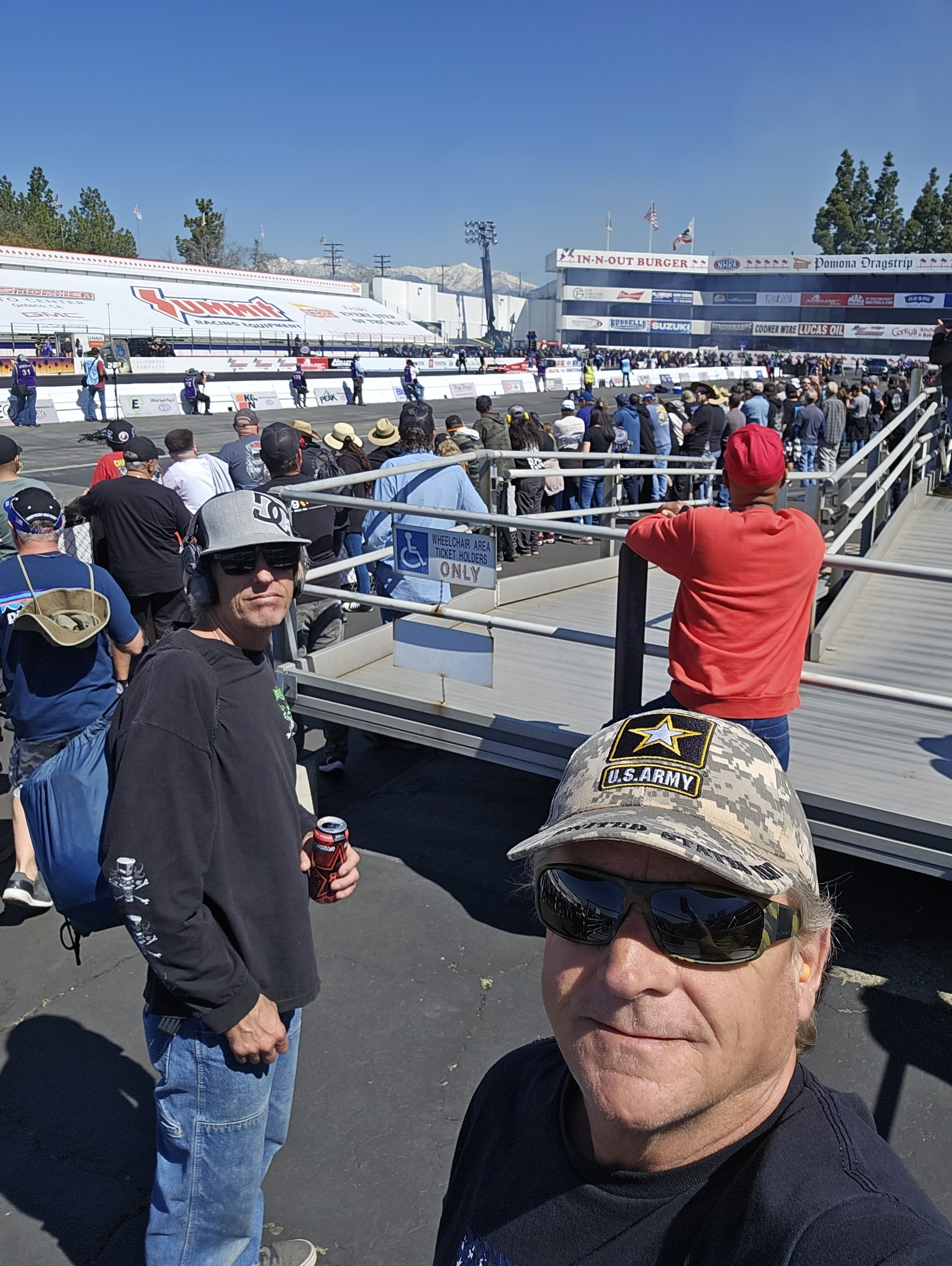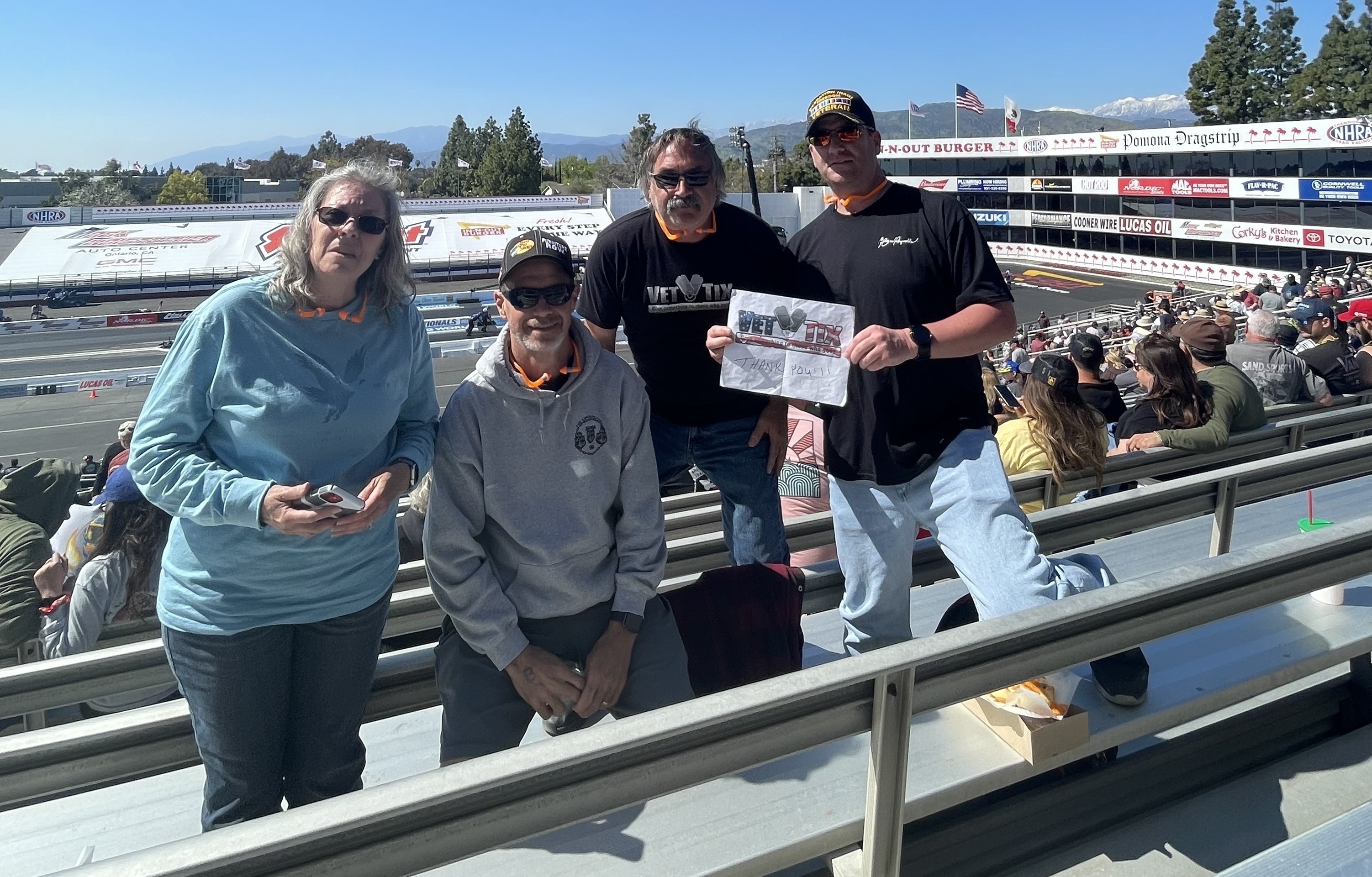 I would like thank Vet-Tix and the NHRA for a great day of eliminations at the In-N-Out Burger Pomona Dragstrip, it was a very enjoyable day.