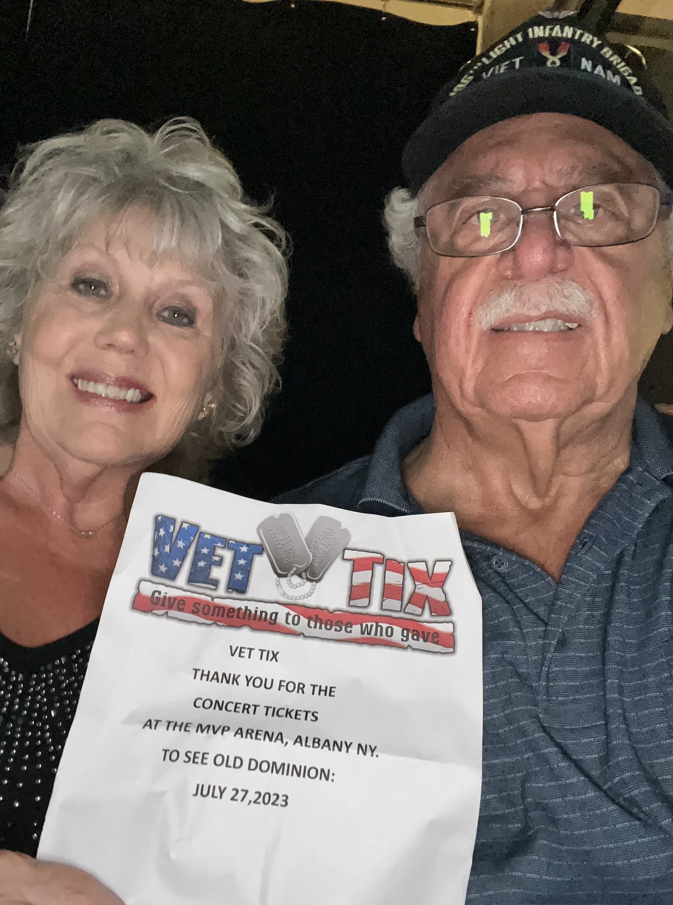 THANK YOU VETTIX.org and the Messina Touring Group for our tickets. The Old Dominion concert was the best!!!! This was the first time we’ve been able to go a concert together and this night out was definitely what we needed. Thanks again, Vet Care Givers