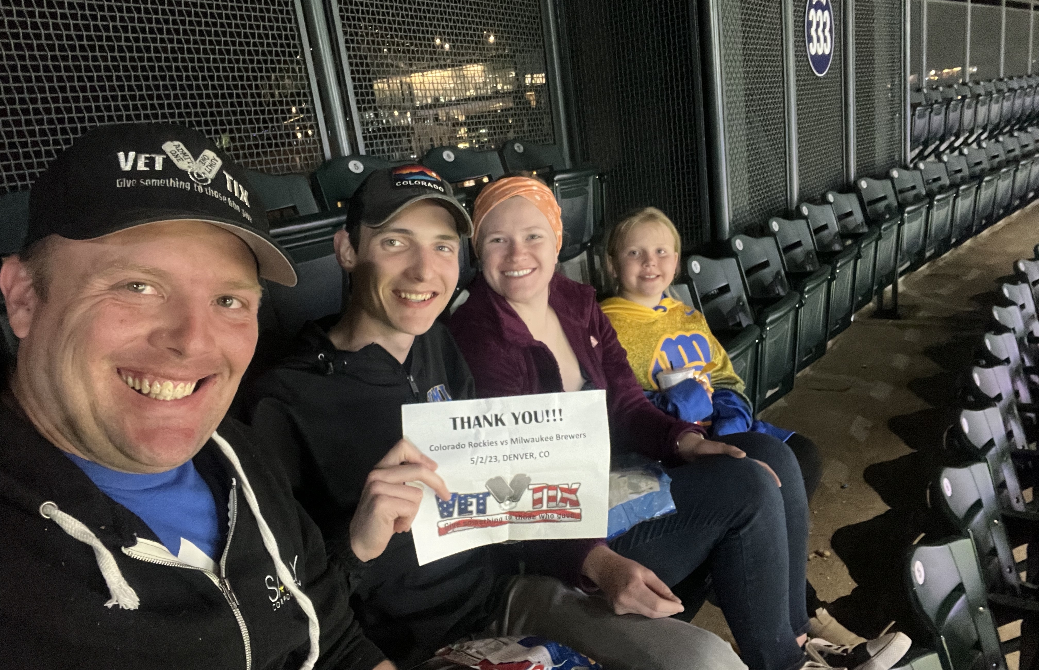 Thank you Colorado Rockies for the tickets to the Brewers game on May 2nd. My wife and I have a great time and it was even more special to witness the Rockies pull out a win. Thanks again, we very much appreciated the generosity.