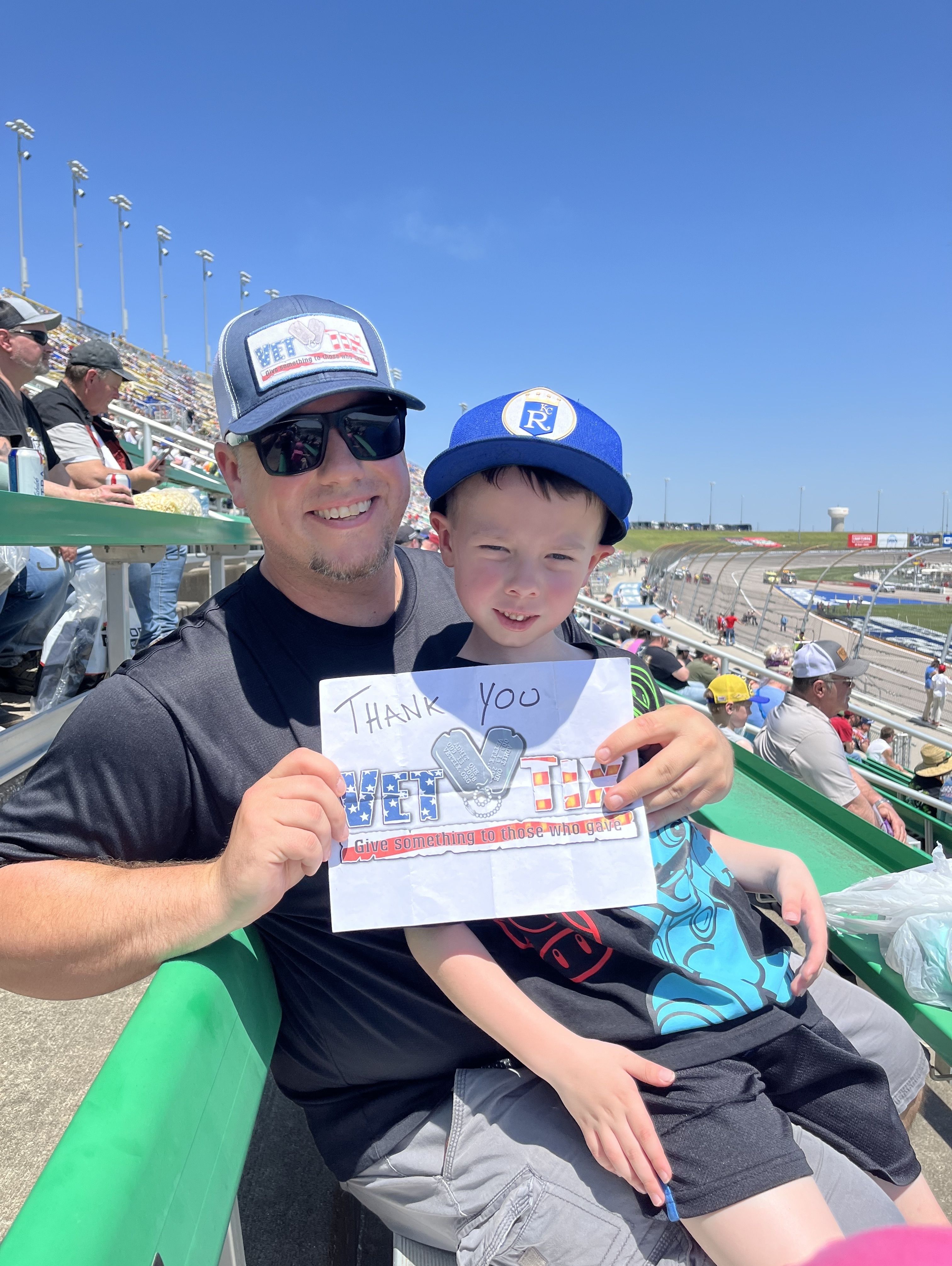 Thank you very much for an enjoyable Sunday race. Our family very much appreciates the Kansas Speedway Veteran Tickets Foundation Purchases for providing this opportunity. This year was extra special as it was our Twins' first NASCAR event. They were excited and thrilled to feel the rumble of the racetrack. The action and mayhem of the race and post-race shenanigans. They talked about it all evening when they got home to their siblings. Once again, thank you very much from our family.