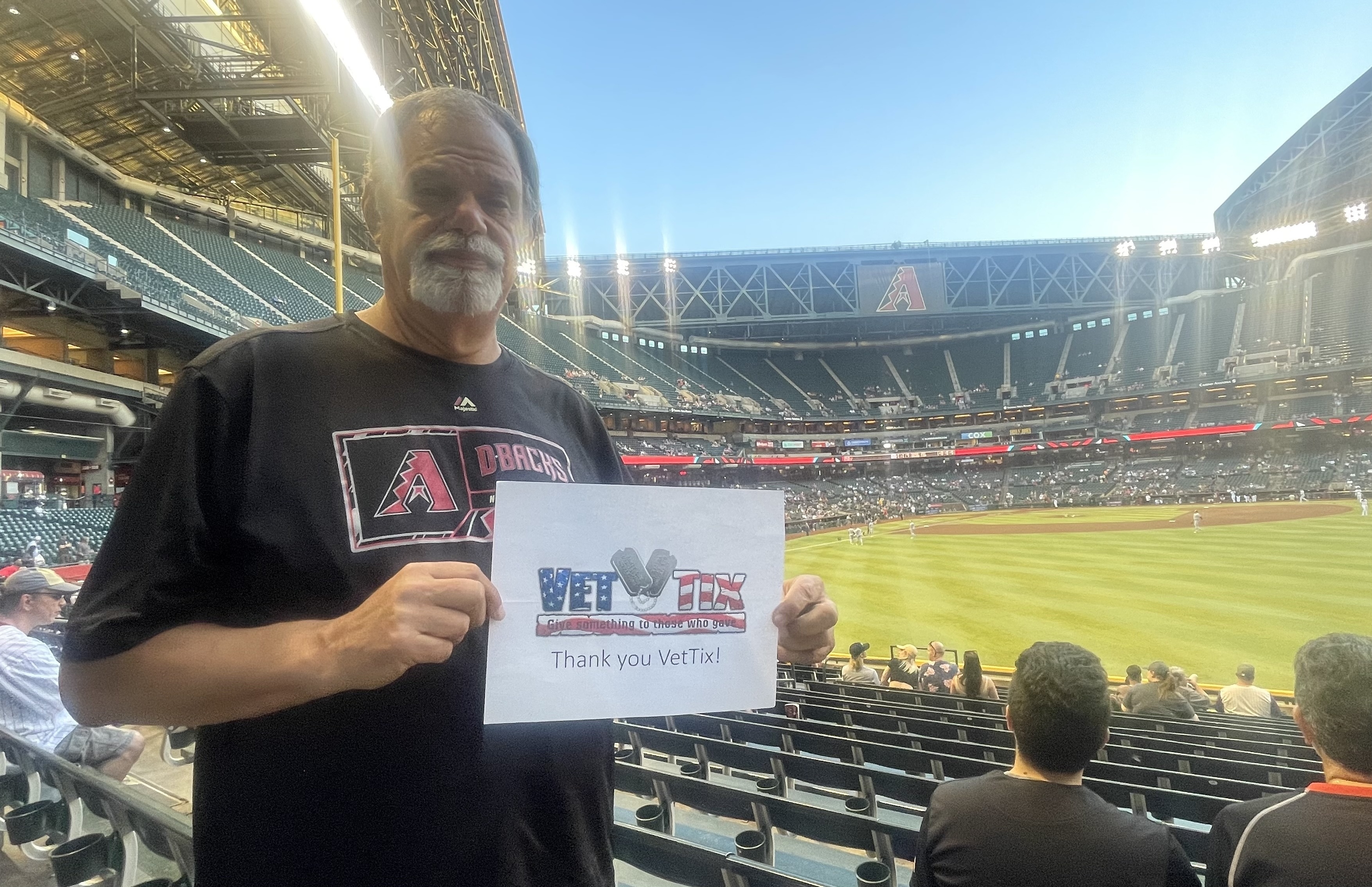 Thank you to the Arizona Diamondbacks for donating tickets to Veterans . We enjoyed watching the red hot D-Backs on an enjoyable evening. Thanks Vet Tix we always have a wonderful time.