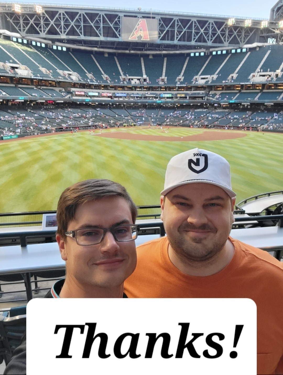 I wanted to say thank you to the Arizona Diamondbacks organization. We enjoyed the game and loved the family moments that were created.