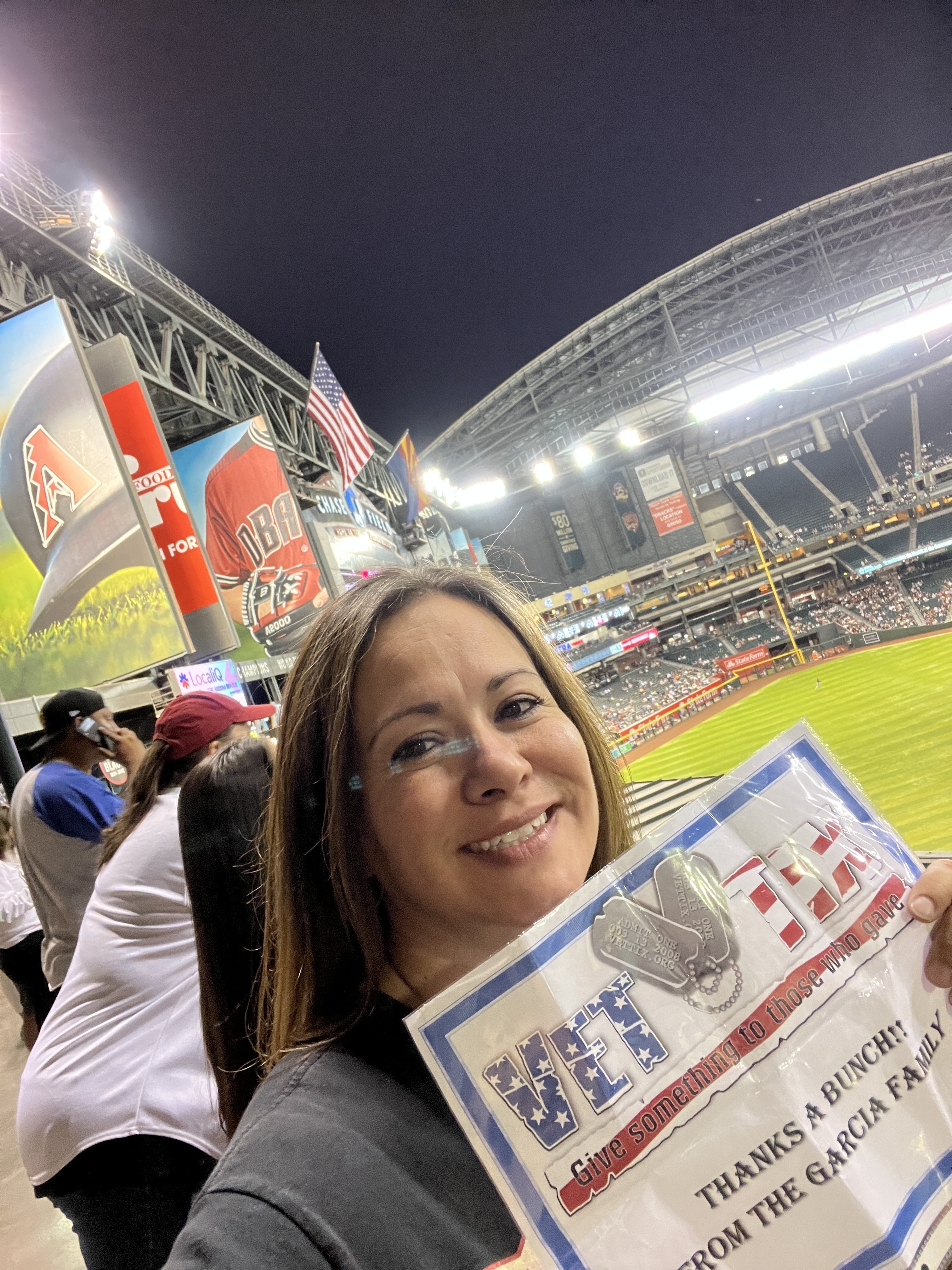 Thank you Arizona Diamondbacks & Vet Tics for a fun evening of baseball with the family. The roof was open and it was a beautiful night, especially since the Dbacks won too! Thank you