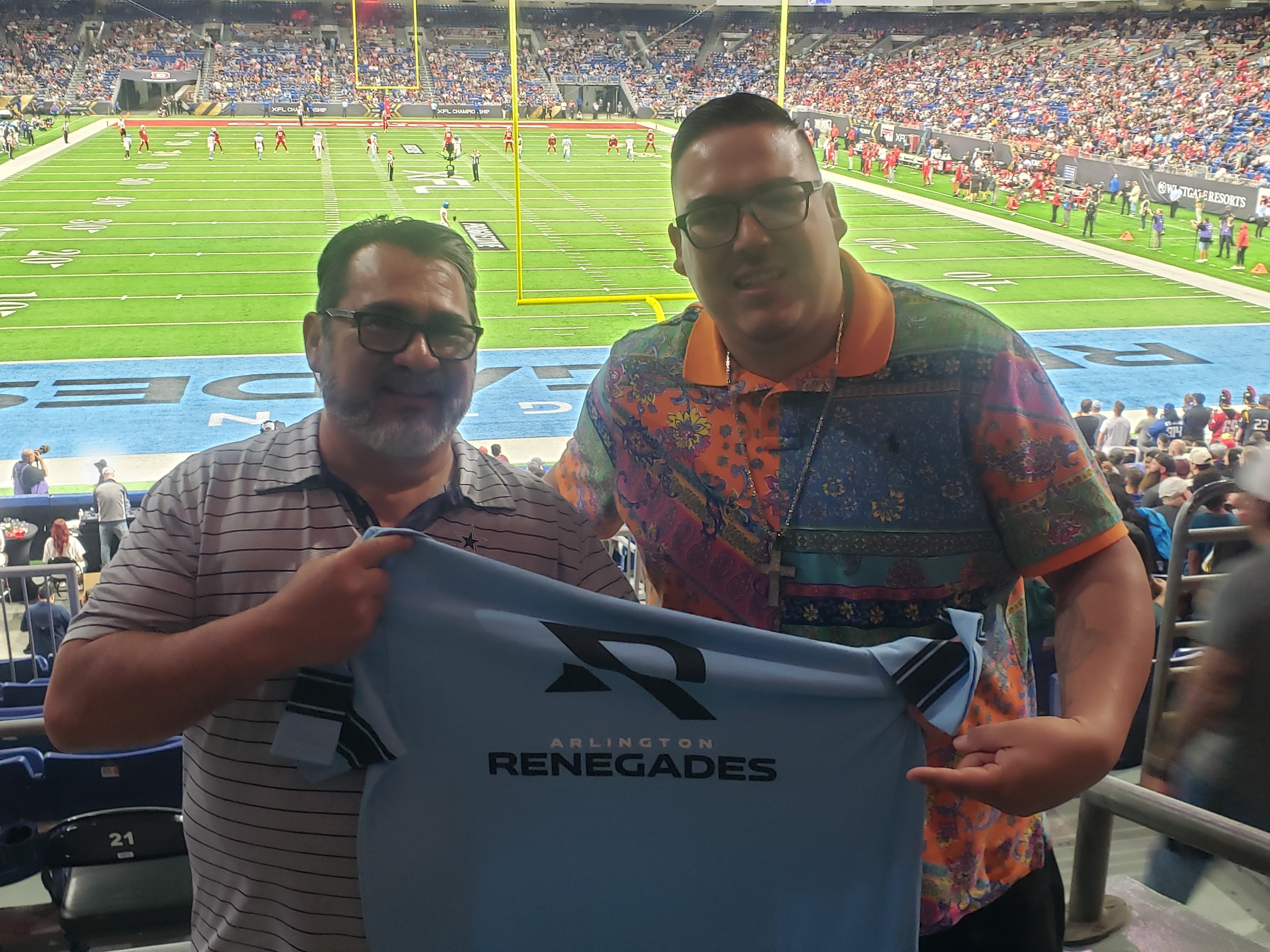 I would like to thank the XFL for donating the tickets, and they were end zone seats!!!! We hope the XFL continues to grow in popularity because some of the plays we saw were NFL level plays!! I also like the different rules to make the game a little more complex and exciting. Way to go Arlington Renegades for winning the XFL Championship and way to go XFL for donating the tickets!! Jim C USN