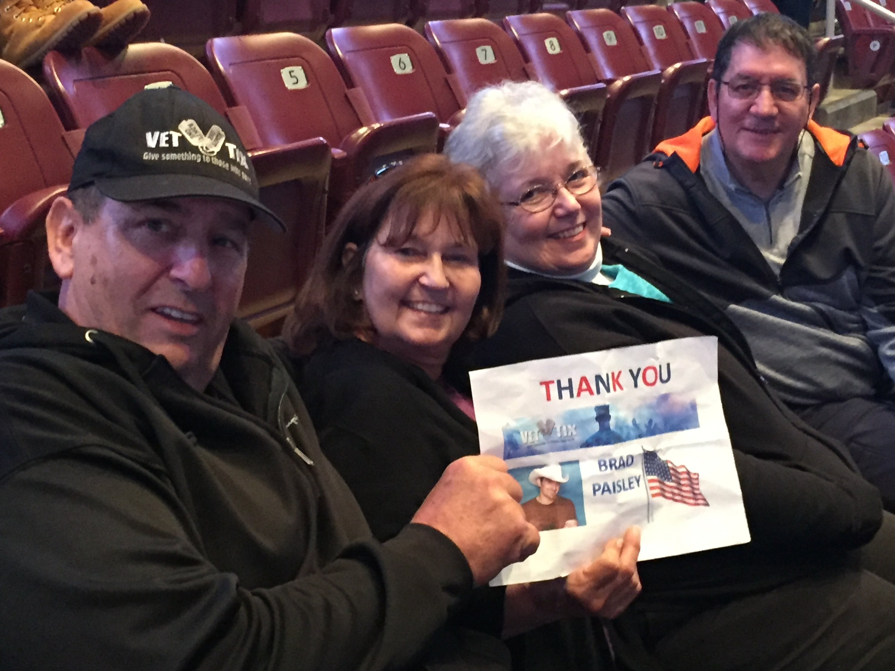 A HUGE thank you to Vettix and AEG Live for donating tickets. The seats were fantastic and could not have asked for better. My family had a great time and we look forward to be able to do this again sometime. Brad Paisley was awesome and it was a great concert.