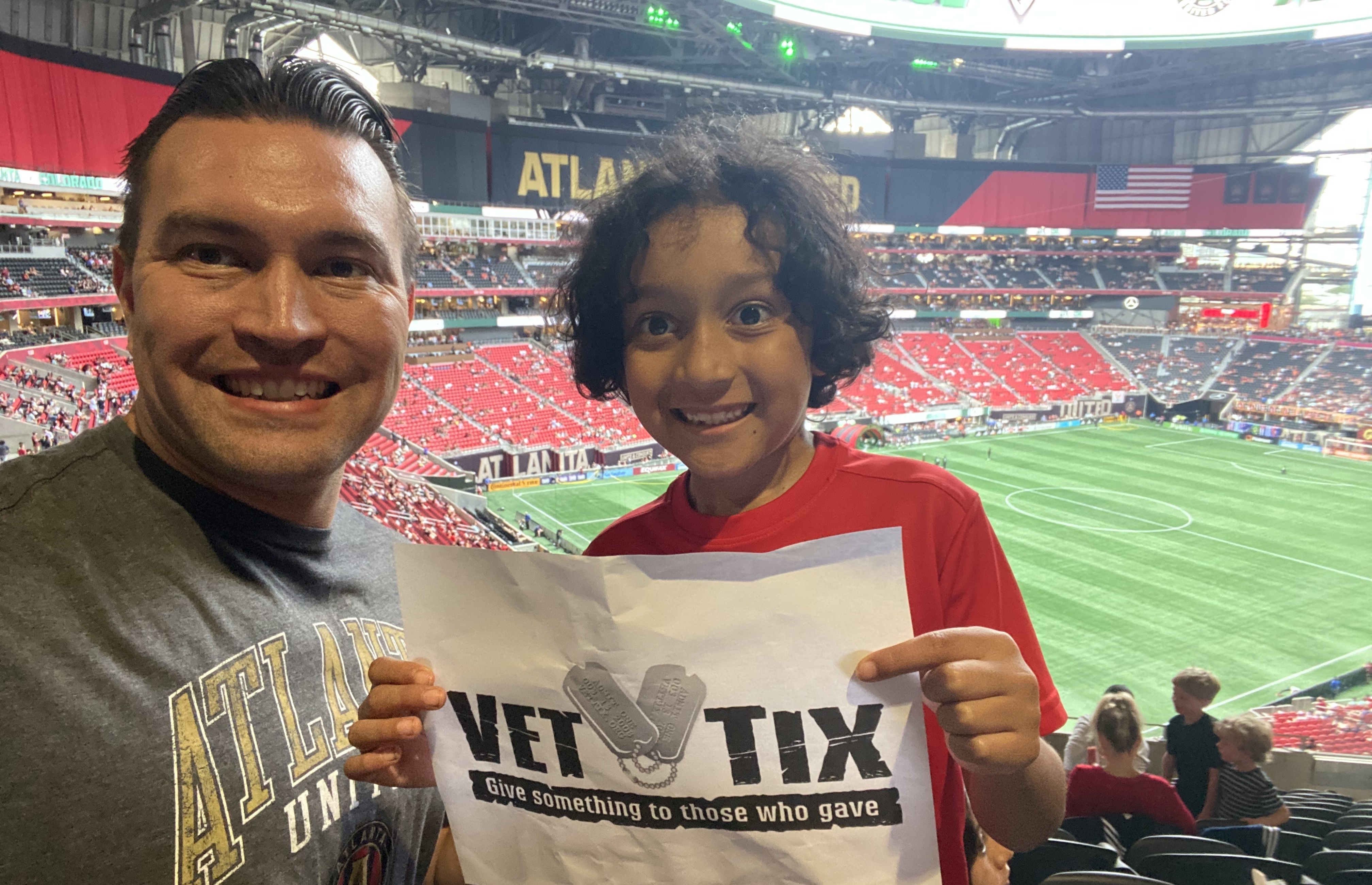 Thank you Atlanta United FC for the tickets to the match against Colorado. Your generosity to veterans and their families is greatly appreciated. May God bless you all.