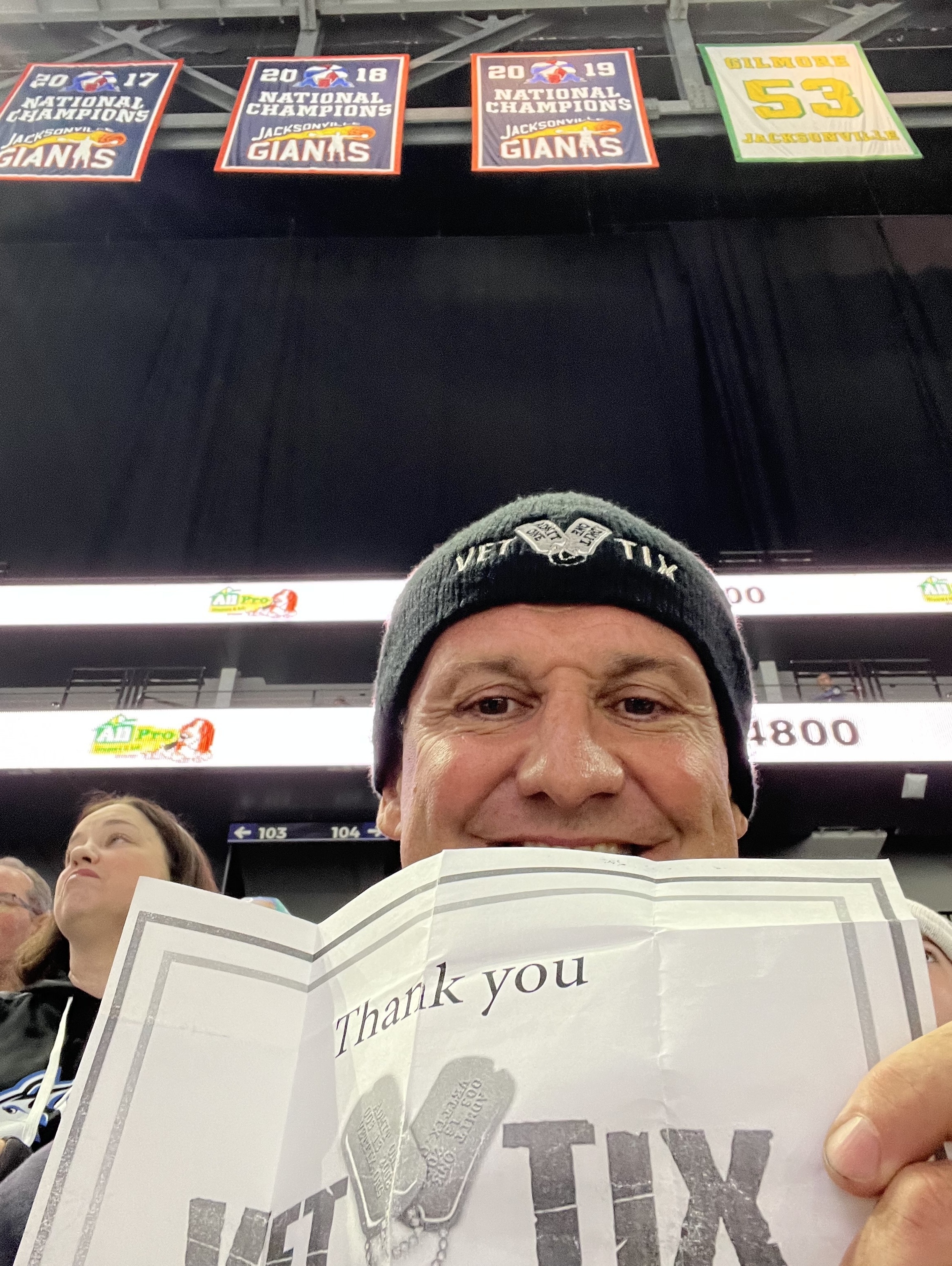 Thanks to, Jacksonville Icemen for the generous donation. Exciting game. Fun atmosphere. Also, thanks to vettix.org for offering such amazing opportunities.