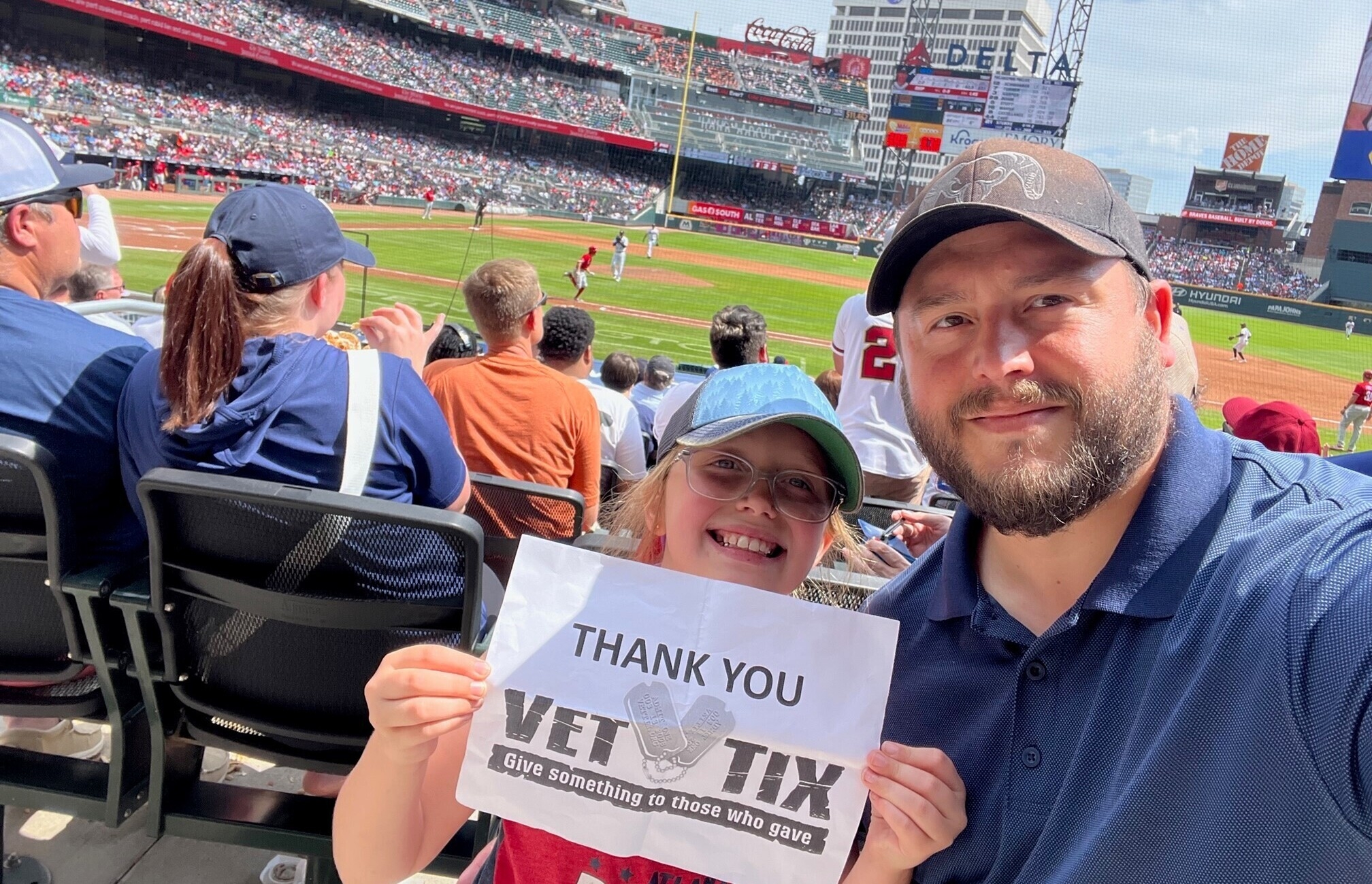 Thank you Vet Tix and all of the donors for the awesome Braves tickets. We had an absolute blast and we can’t thank you enough. We even caught two balls thrown into the stands by the players! My kid was so excited! Thank you again!