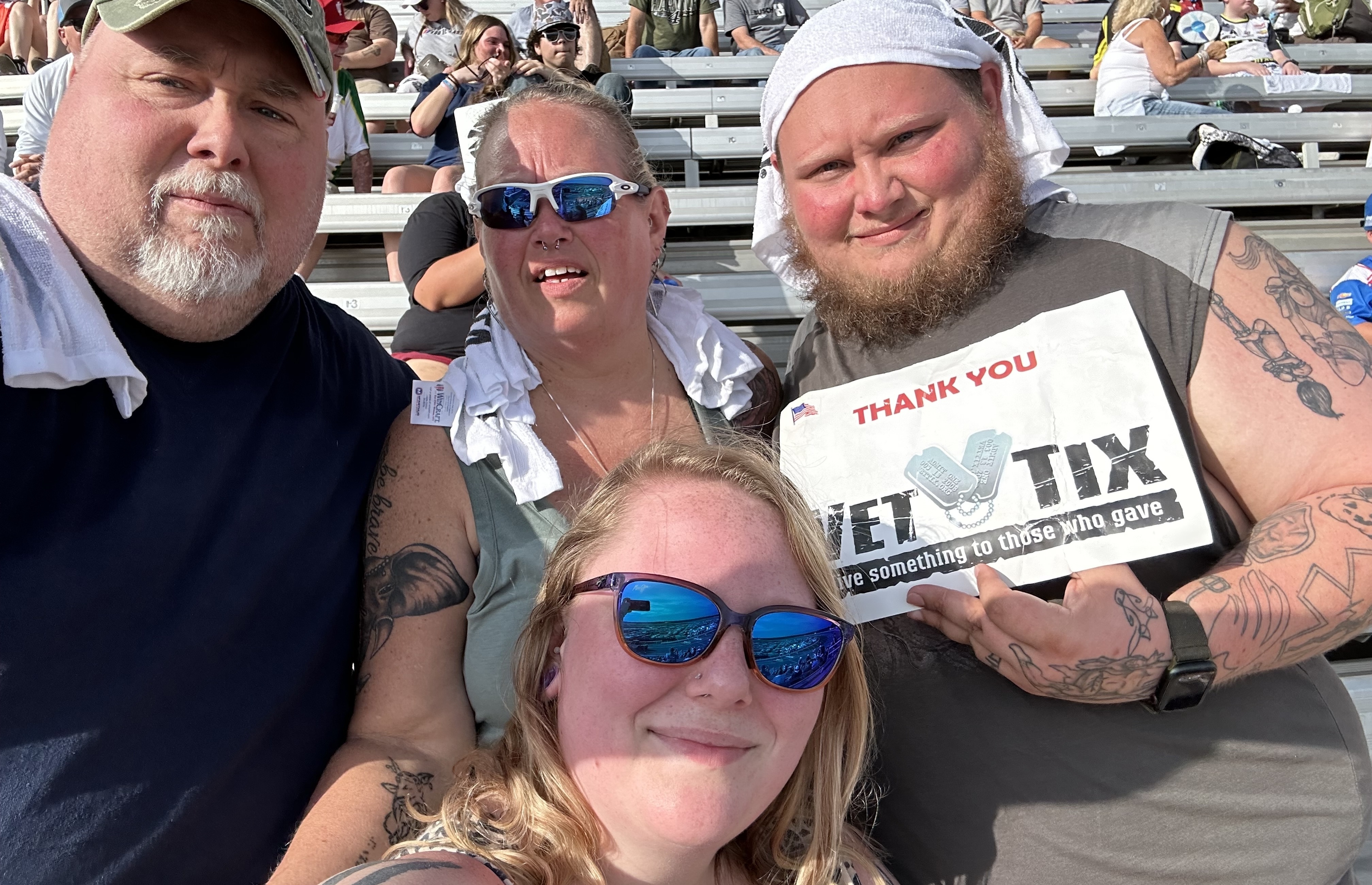 Can't say enough thank yous for Vet Tix and their many sponsors allowing vets like myself to enjoy so local entertainment. Had a blast at a rain shortened event. So close we had to shower when we got home to get the tire debris off us. What a day! Thank you Speedway Motorsports for the opportunity and always, thank you Very Tix!
