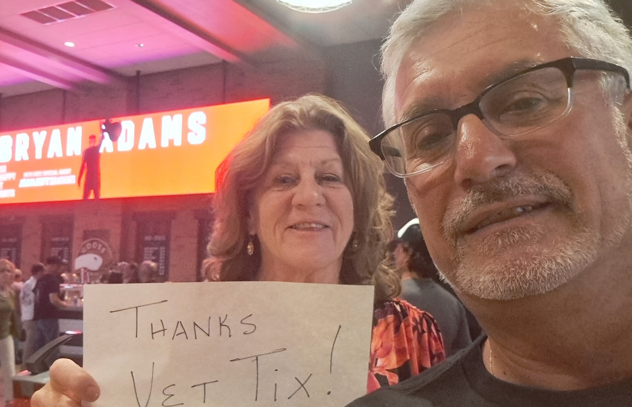 Thank you Live Nation for the Bryan Adams concert time. We had a great time.Thanks again for Supporting Veterans and our families.