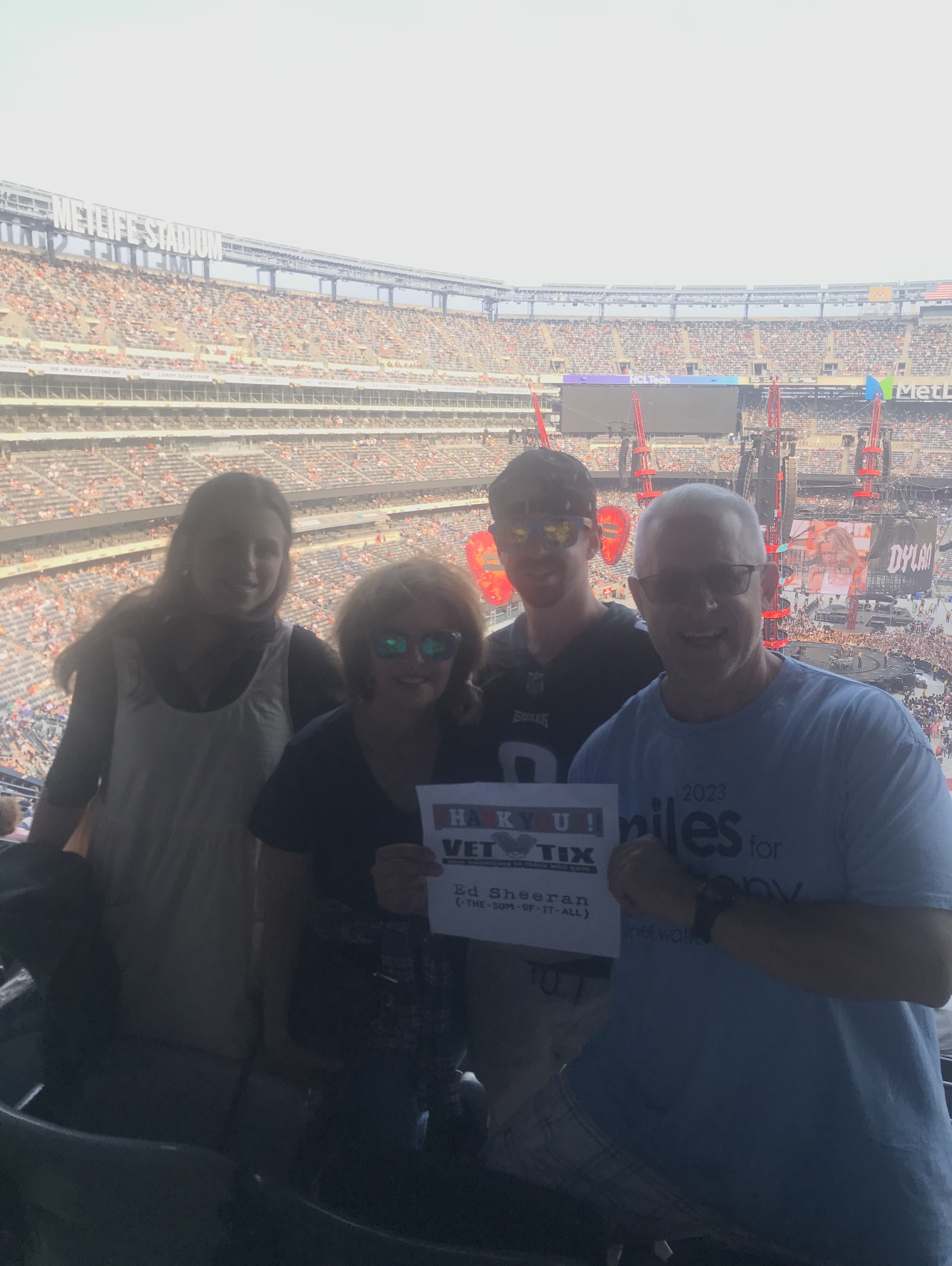 Thank you so very much for your generosity! As wives to husband's who are currently serving, we rarely get free time to enjoy a night out. We were able to take each of our daughters to enjoy their very first concert. It was an incredible experience and Ed Sheeran was amazing! We also met another family who is stationed at McGuire AFB next to us. We are so very thankful for the experience and opportunity to go see this concert. A concert like this would never have been possible for our families without Vet Tix. Thanks again!