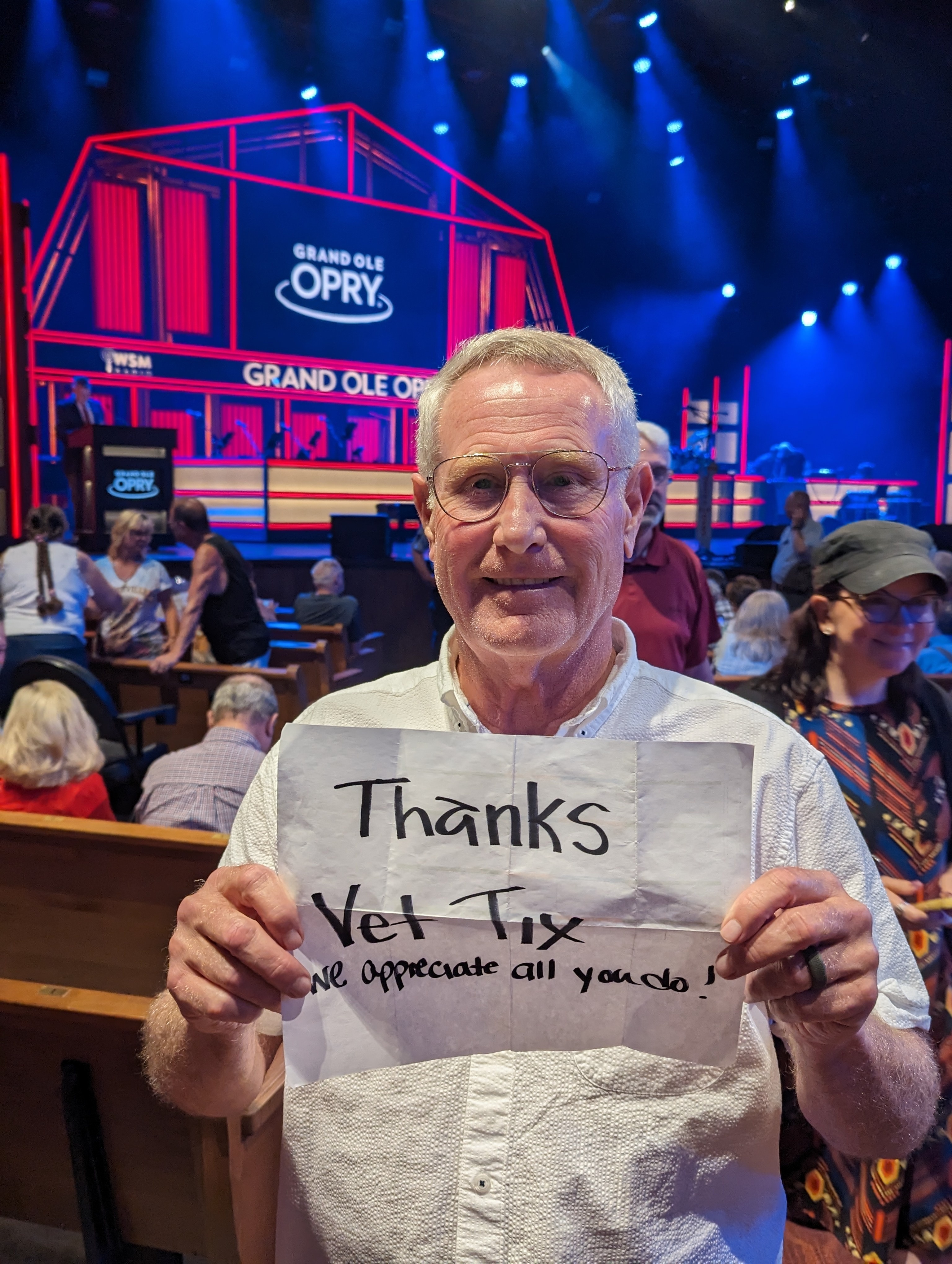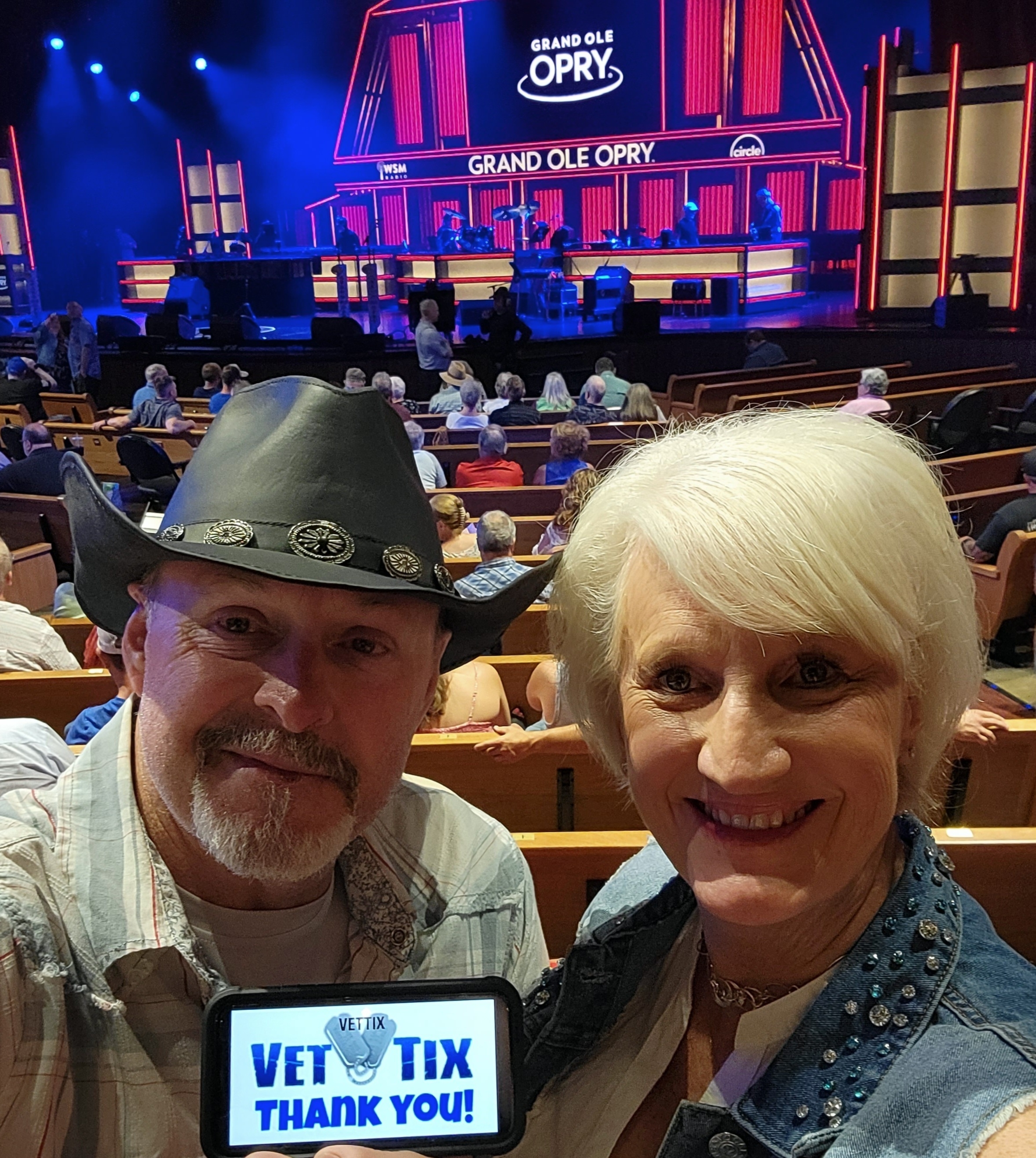 Thank you so much for the tickets to the Opry. We had a marvelous evening. We even ran into another military family we knew grin Washington state years ago. Military folks get around. Thanks again!!! The Hall's