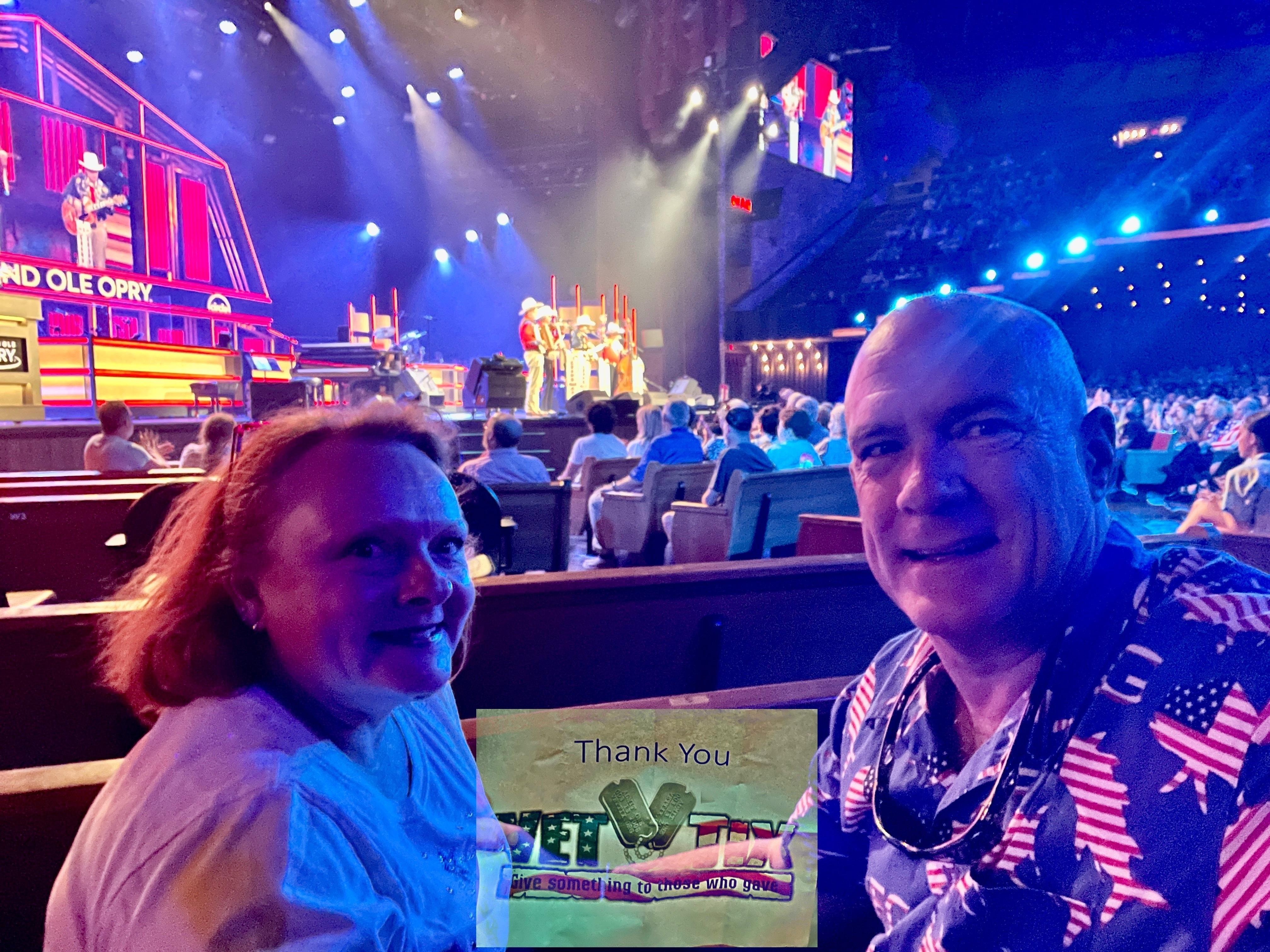 What a treat and fantastic experience to go to the Grand Ole Opry on The 4th of July. The artist’s and patriotic music selections were outstanding and our party is very appreciative of the ticket donation. Thank you so much!!!
