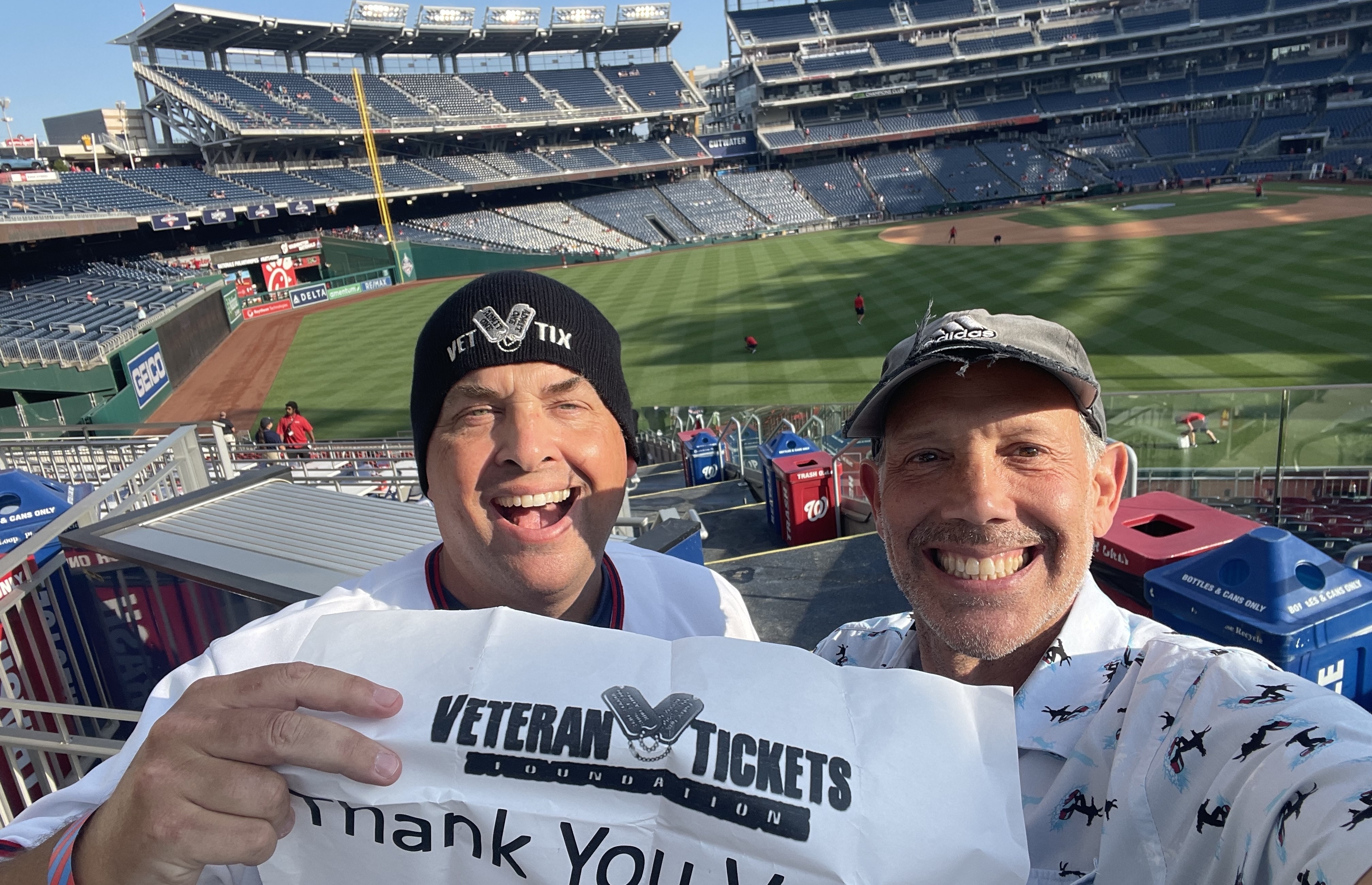 Thank you Washington Nationals for a fun game and a win! Thanks for supporting veterans!! I had a great time with a fellow vet.