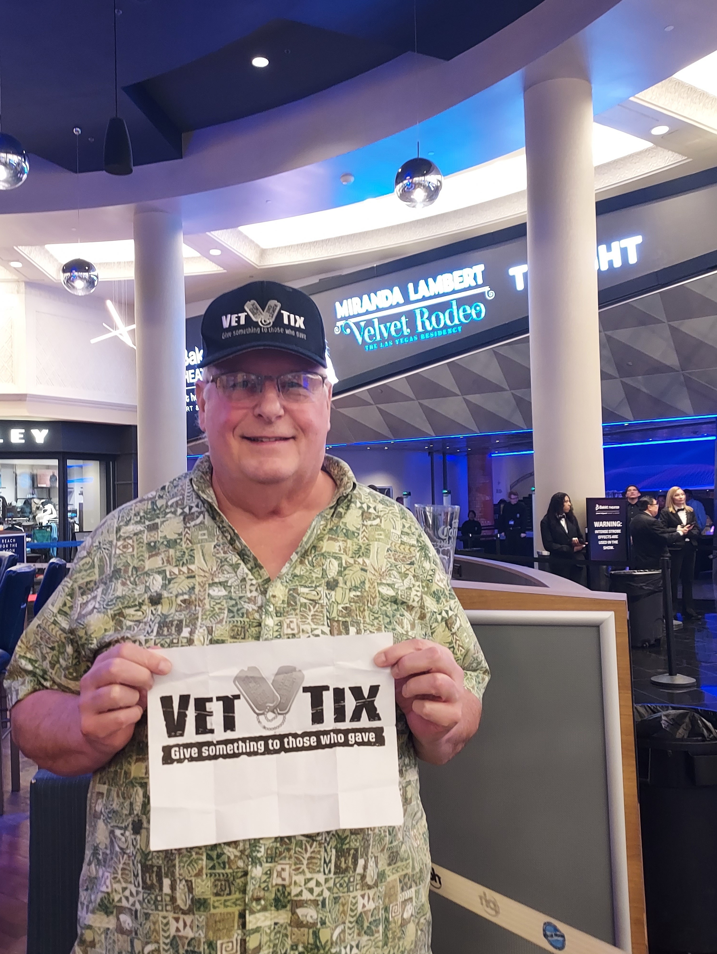 I wish to thank vettix Miranda lambert and ceasars entertainment for a outstanding evening with my wife and shared with other vets at the event. Thanks for all you do for vets