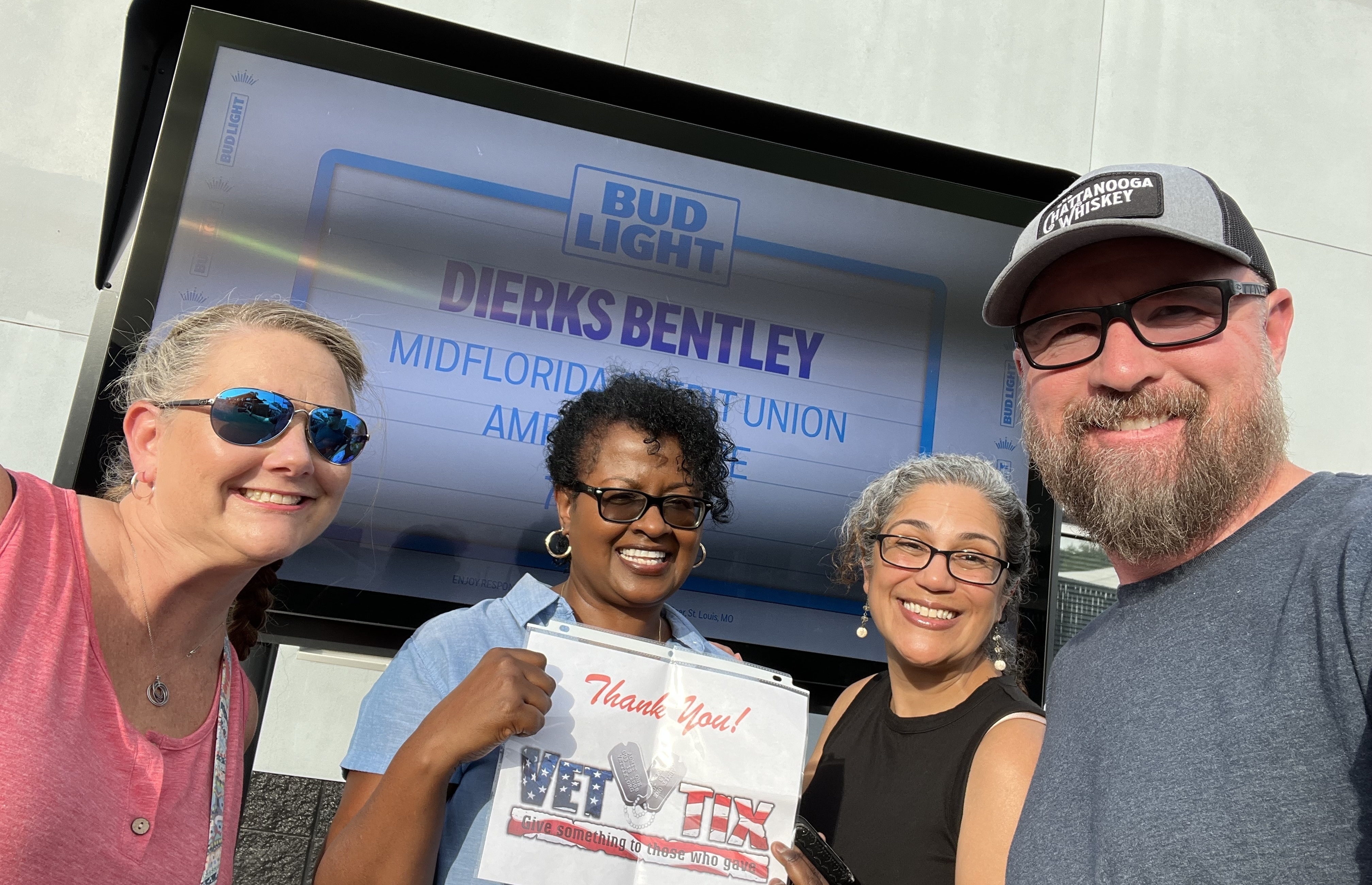 Thank you VETTIX and Live Nation for a fun night watching Dierks Bentley at the MIDFLORIDA CU Amphitheater Tampa, FL. These veterans were very happy after a hard workweek. Your generous gift makes a great difference in our lives. Thanks!