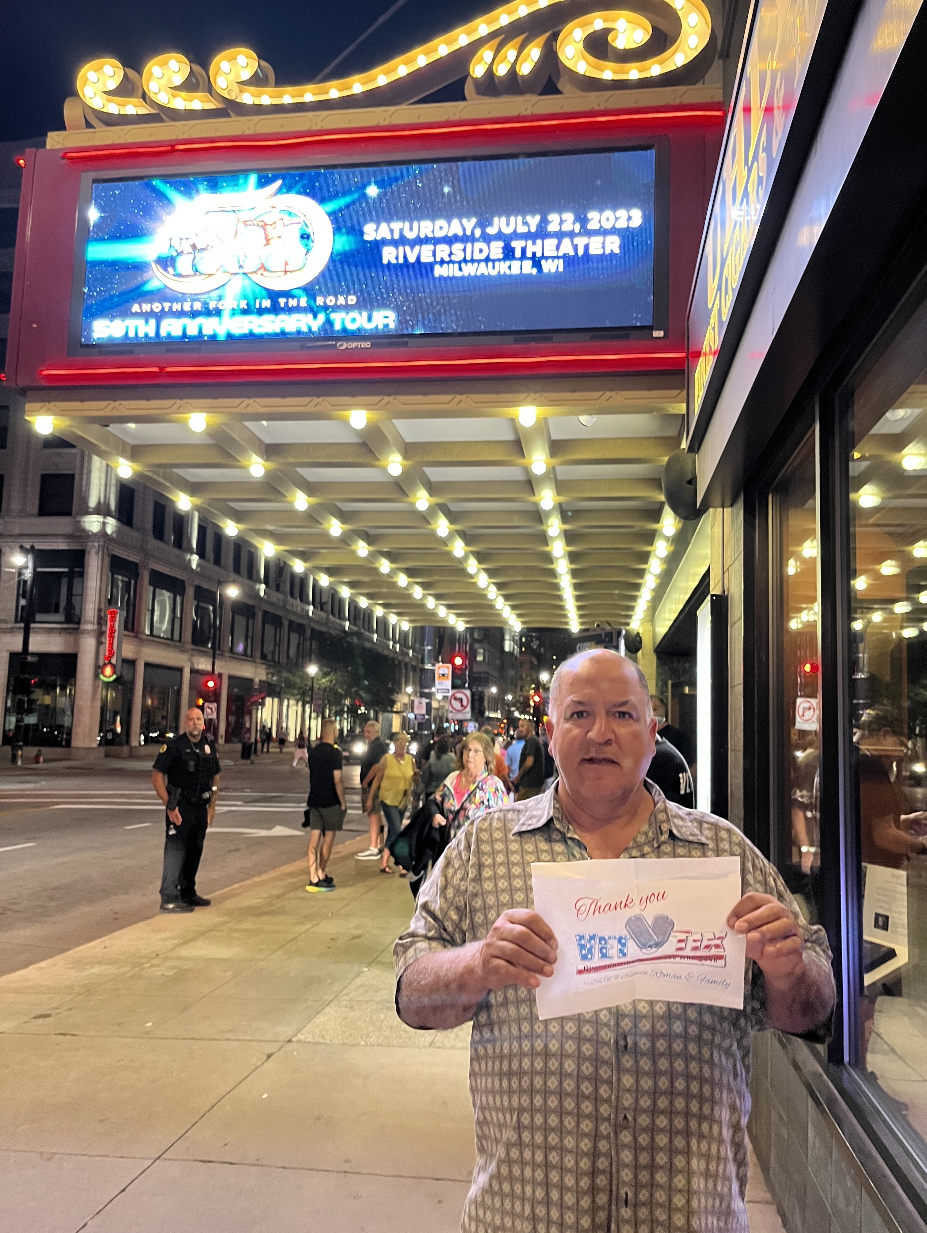 Great Big Thank You to the Pabst Theater Group for this iconic venue. 50 Years Kansas did not disappoint. It was a night where good memories where made. And lastly, a Great Big Thank You to vet-Tix for you, and your organization and what you do for us Veterans. Best Regards