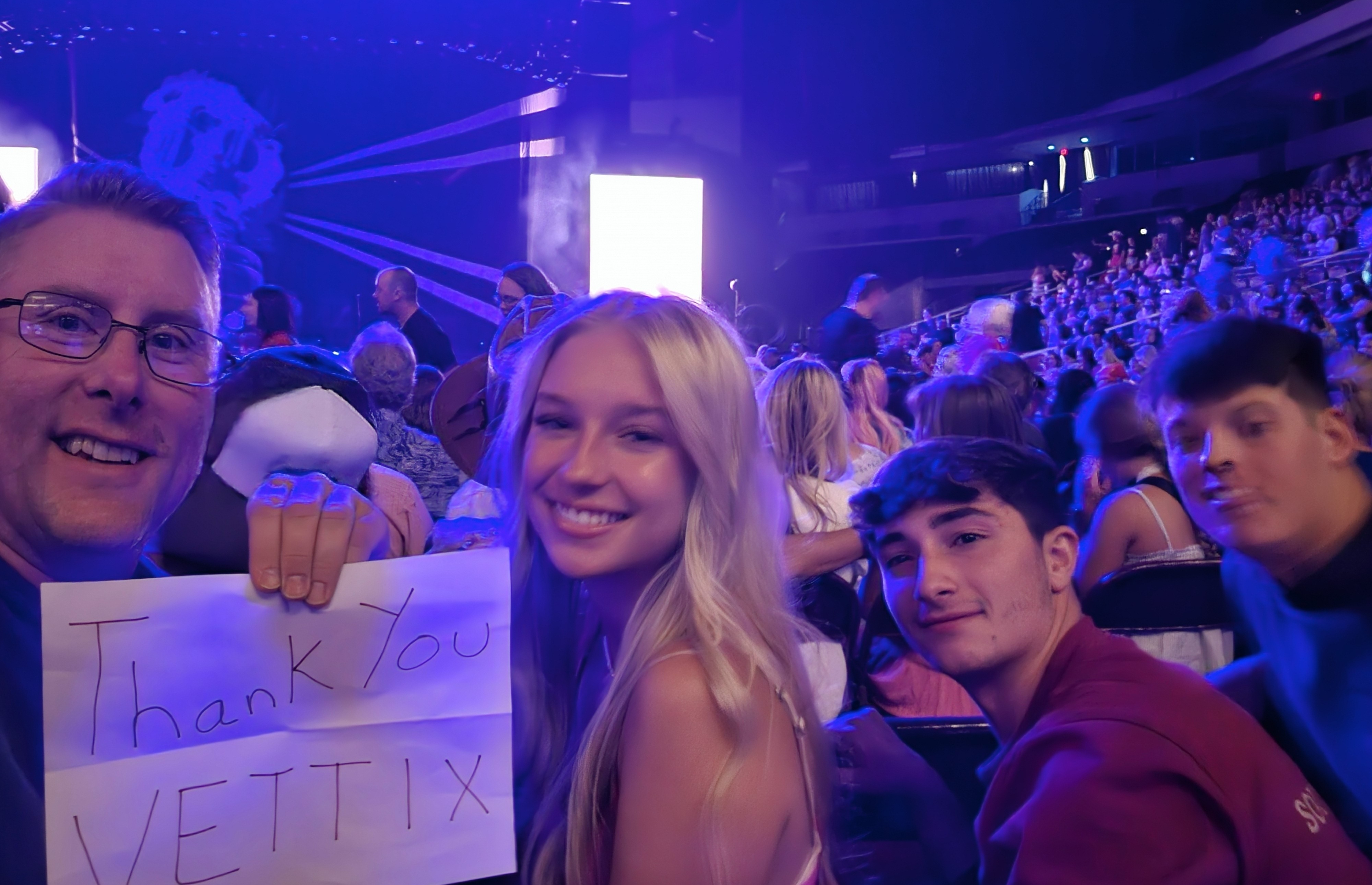 Thanks again VETTIX for our concert tickets made two grandkids very happy Thanks Again Terry and Helen Bajorek