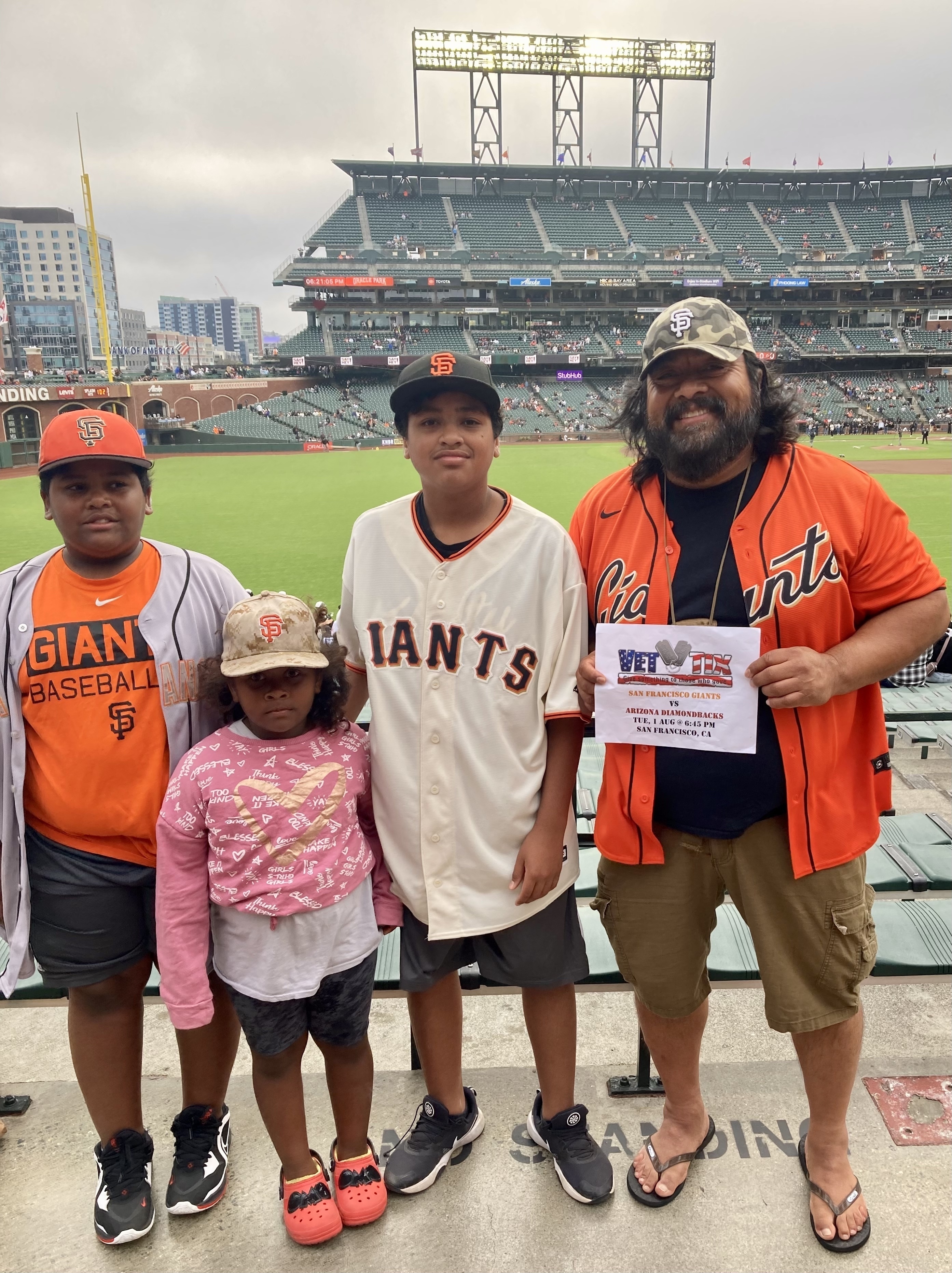 A heartfelt thank you to the San Francisco Giants and VET TIX for allowing my little family the enjoyment of an exciting and memorable event watching our all time fav baseball team...GO GIANTS! Sincerely, The Gutierrez Family