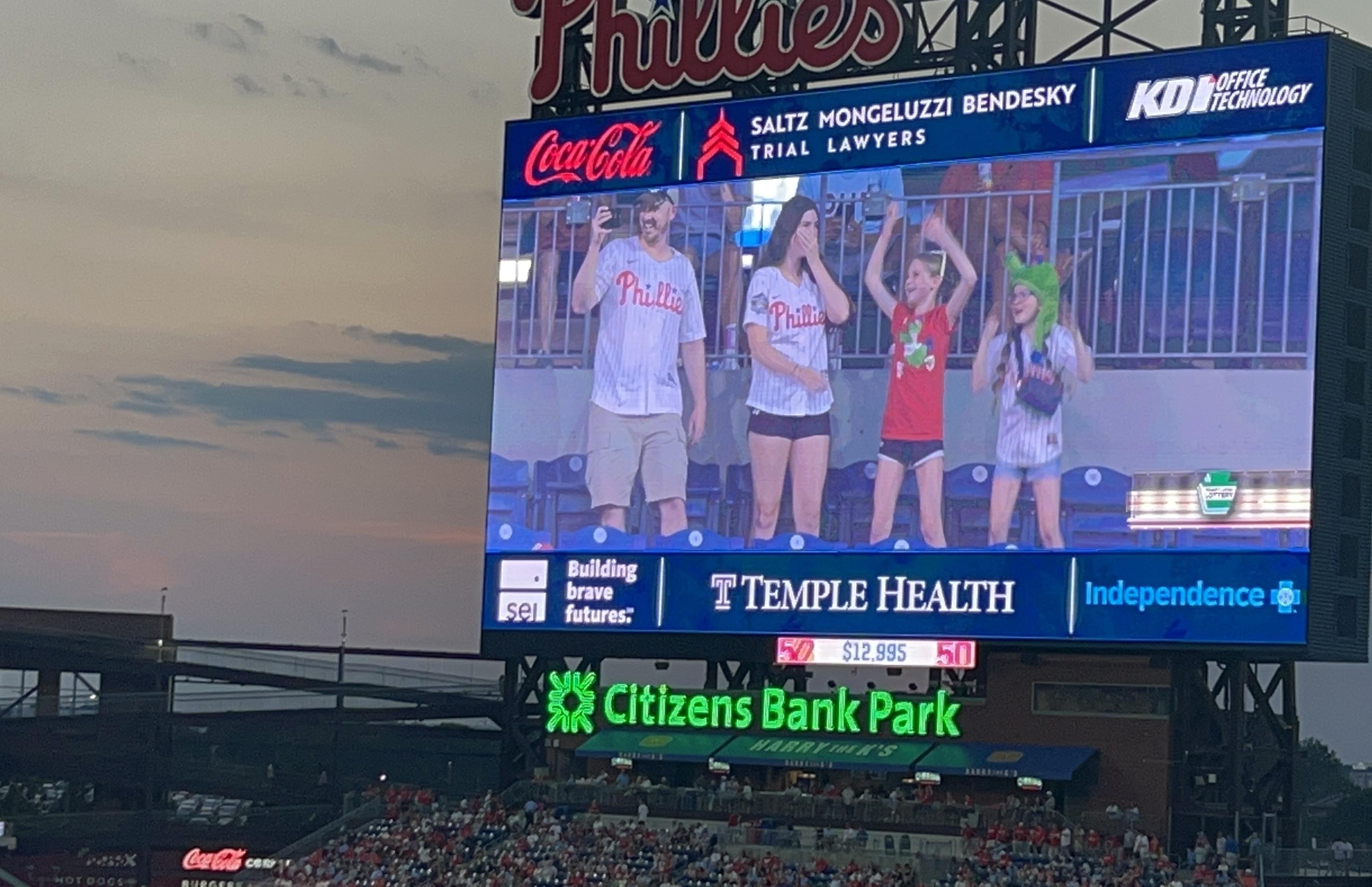 What an incredible night! Thank you to the Philadelphia Phillies for donating tickets. Being in the stadium for a no hitter and getting on the big screen was a night we’ll never forget.
