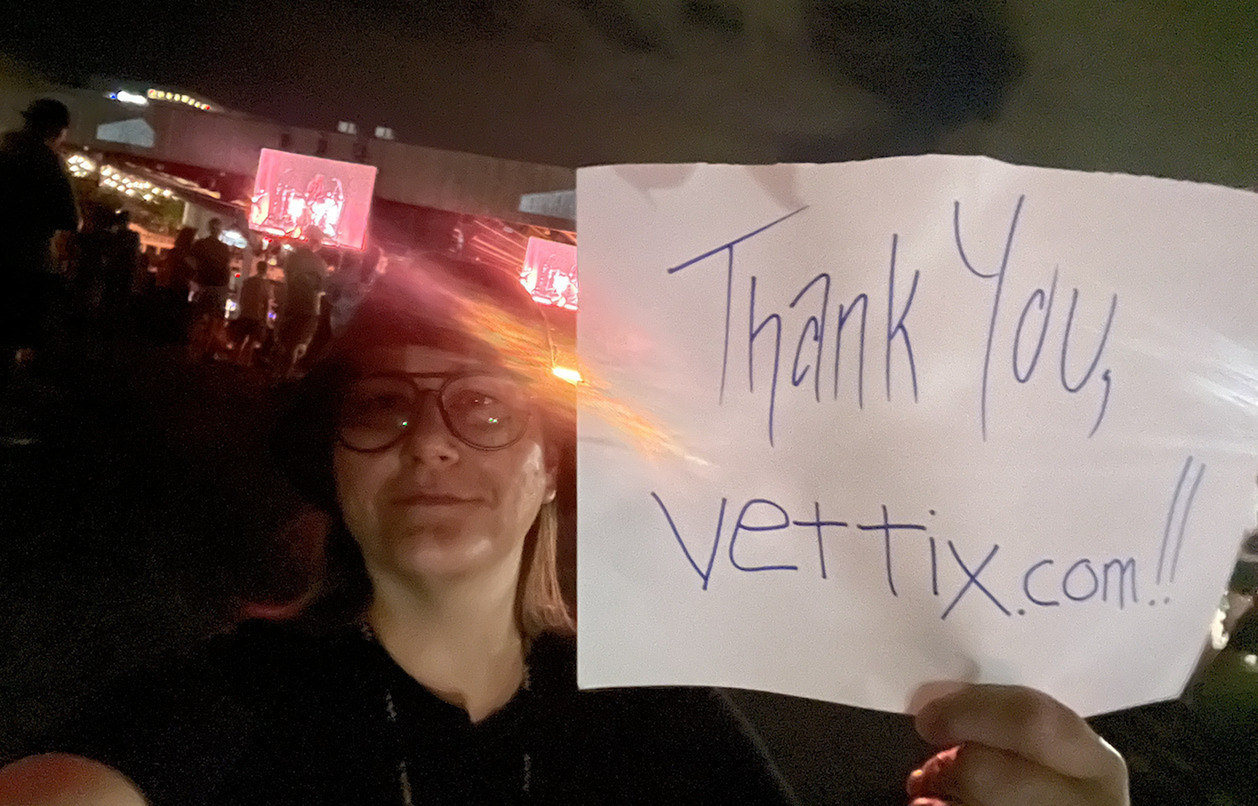 I wounds like Thank Live Nation and VetTix for a wonderful concert. I have not been out since the pandemic. The whole ordeal was fantastic.