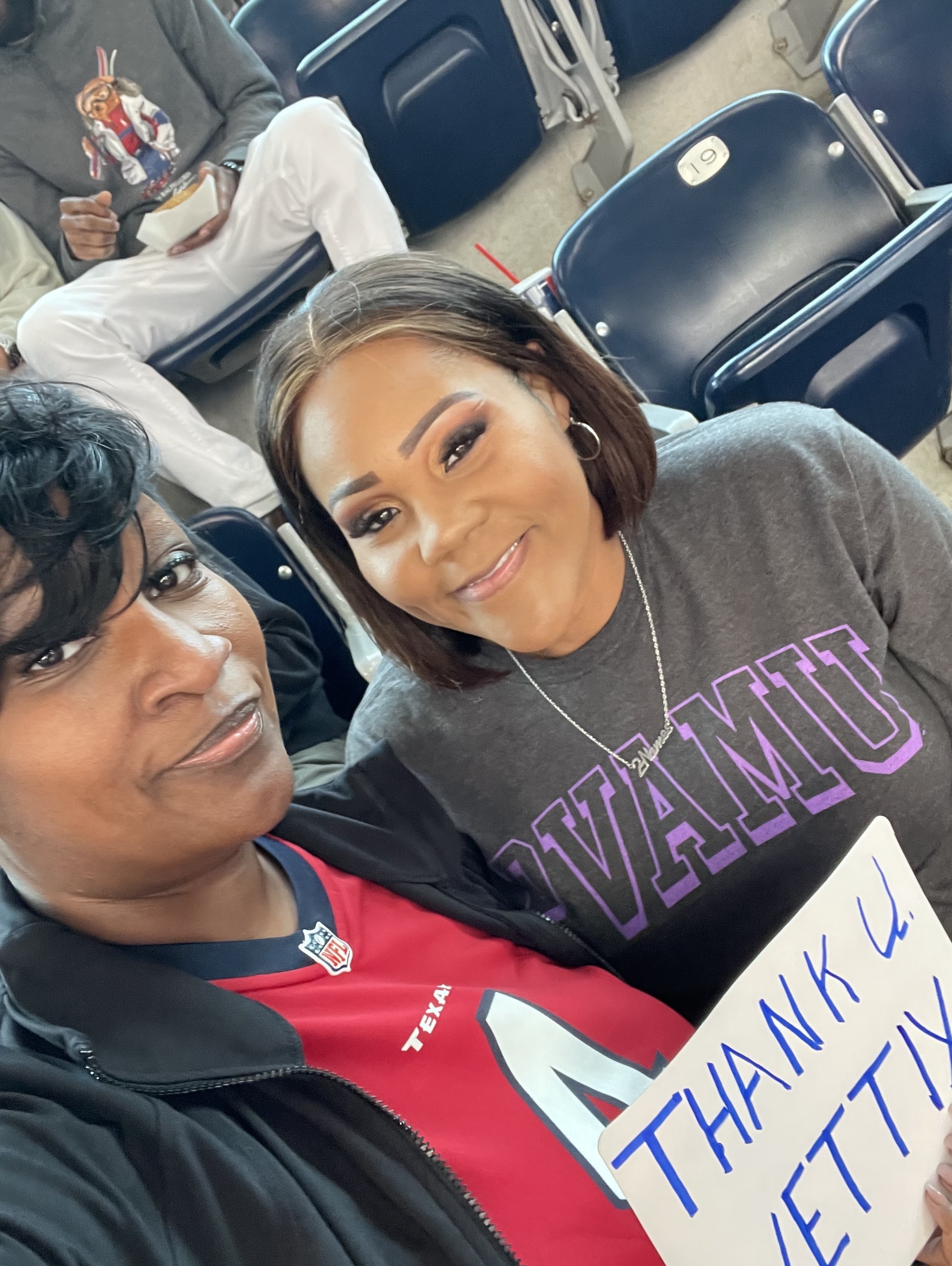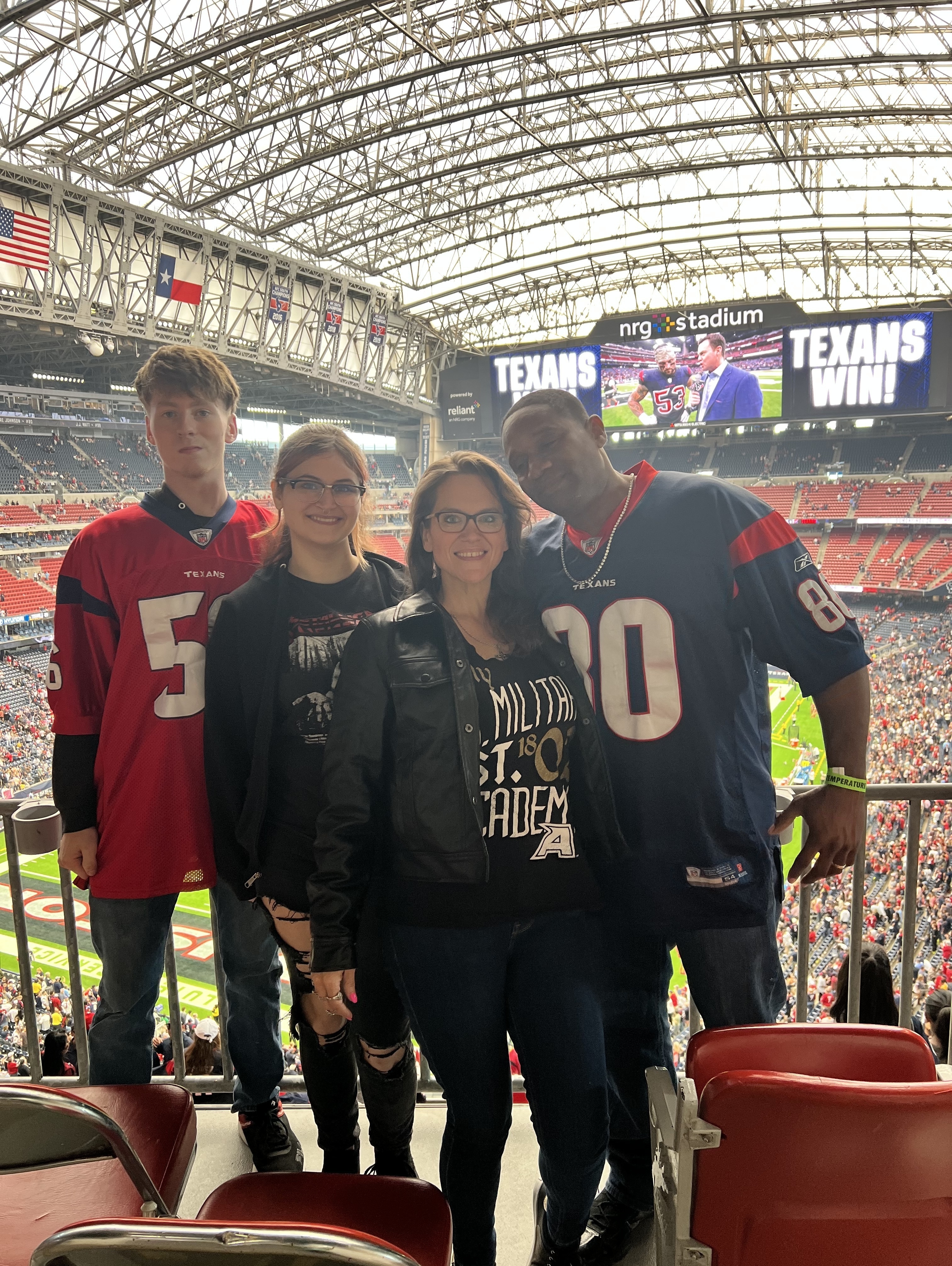 I just wanted to thank those who donated these tickets for my family. This was the perfect time to celebrate my husband and my 18 year old daughter’s boyfriend’s birthday. We very much needed this bonding experience and I will be forever grateful!!!! The Texans won this game and we have an experience that will forever be remembered. Thank you again, because we all left extremely happy!!
