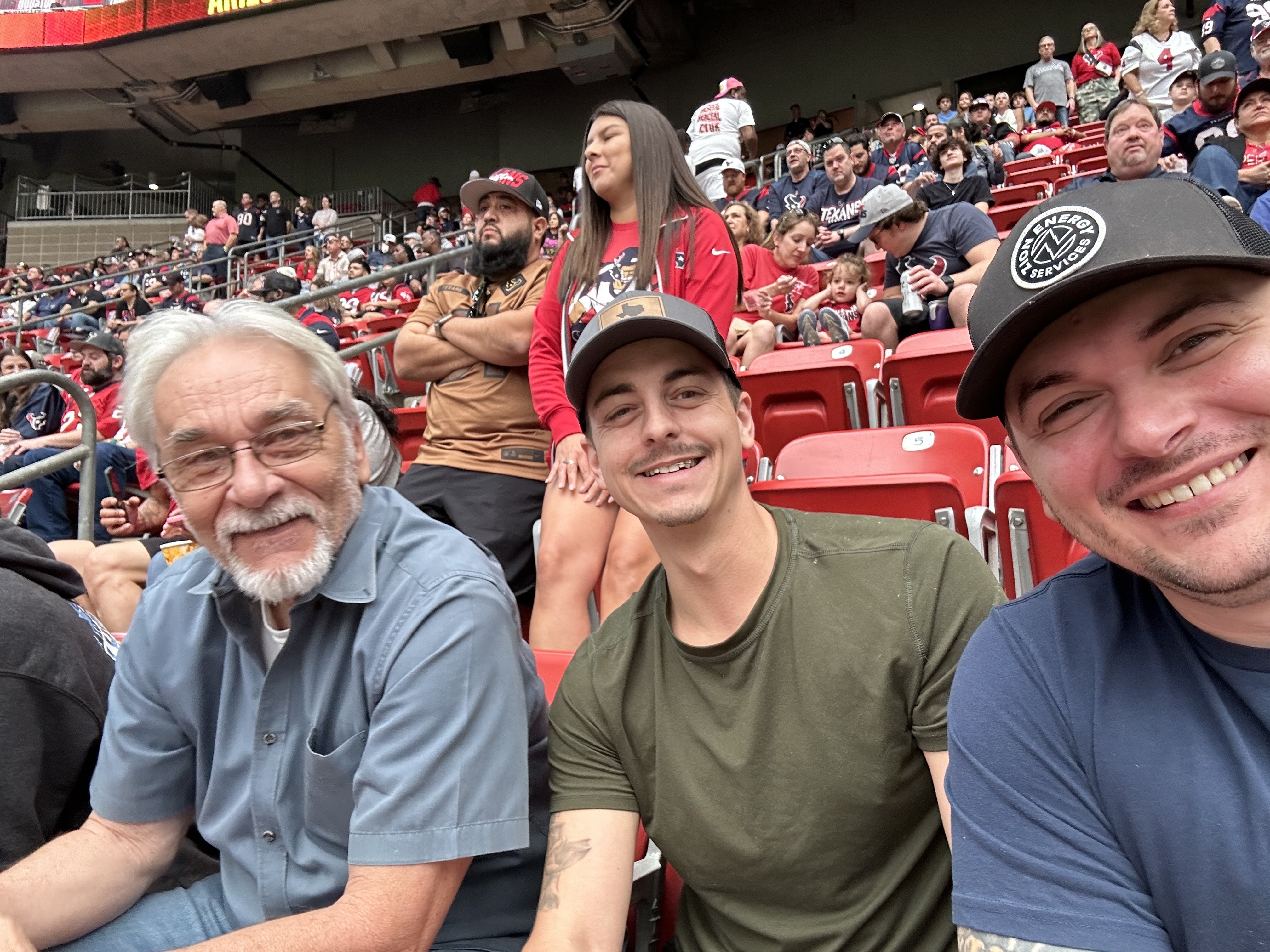 I took my dad to his first ever NFL game and he was filled with excitement from start to finish. He’s an Air Force veteran and I myself am a Marine Corps veteran. Took a coworker with us and it was everyone’s first Texans game. We all had a blast and the seats were fantastic. So to everyone that donated tickets a big heartfelt thank you goes out to all of you for making this possible!
