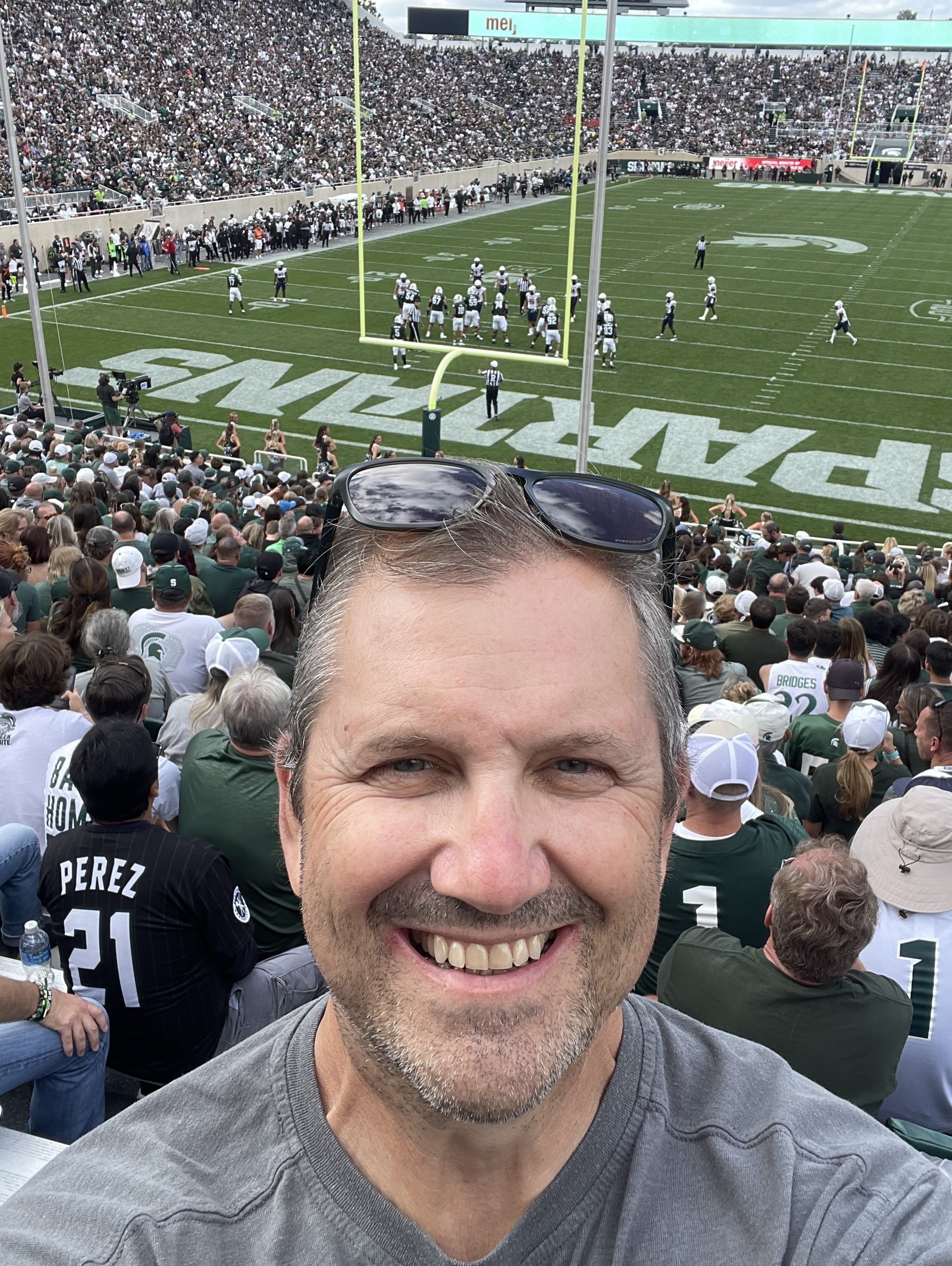 Attended the game with my submarine shipmate and Michigan State alumni. Beautiful day for a MSU win. Thank you Michigan State University Spartans. GO GREEN!